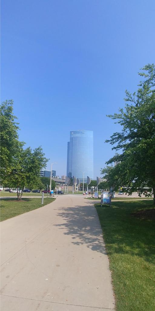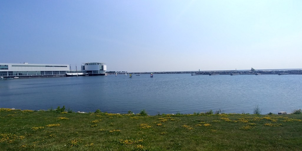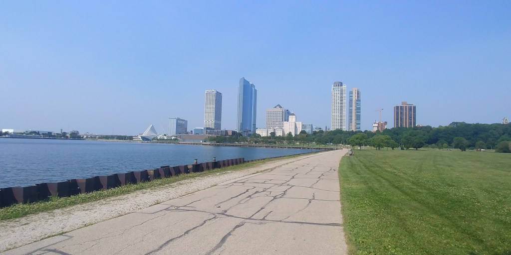 Our half-day air conditioner installation turned into a longer project than expected. The worker removed our compressor (with difficulties) and the fan. Owen worked in his office, and I went for a walk to get out of everyone’s way. Milwaukee really is a beautiful city. From our spot at the marina/service center, I walked north across the river. I walked to the lighthouse and through Lakeshore State Park between the Summerfest grounds and the lake. It was a toasty day, and there were a lot of people out and about. On the other side of the park were Discovery World and the infamous Milwaukee Art Museum. I followed the path around to the sailing center, which is very near the McKinley Marina that most transients will visit for their Milwaukee stop. I did see that that Lakeshore State Park did have a few slips available with power for $1.50 per foot. There were no boats there, and I’m not sure how big a boat can fit. On my way back from my walk, I stopped at Riverfront Pizza Bar and Grill for lunch.