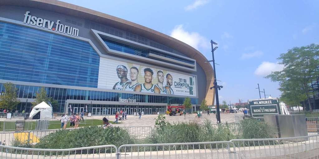 The Fiserv Forum was less busy than the night before, but there was a line for pro shop merchandise that was more than a block long. I was happy to see that workers were changing the sign. Congratulations, champs!
