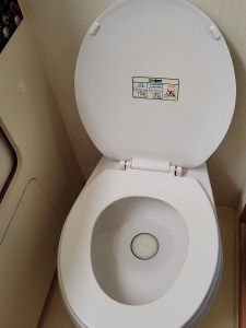 After that, Owen went and worked on his dang dinghy project, which seems all cool and boaty. Meanwhile, I worked on a toilet project. The seal on the aft head was causing water to drain out of the bowl when it wasn’t supposed to. I watched a 15-minute video on YouTube and decided I could do this myself. It took me more than 15 minutes, but I did it. The part was $72.99 at West Marine. Just $15.99 on Amazon.