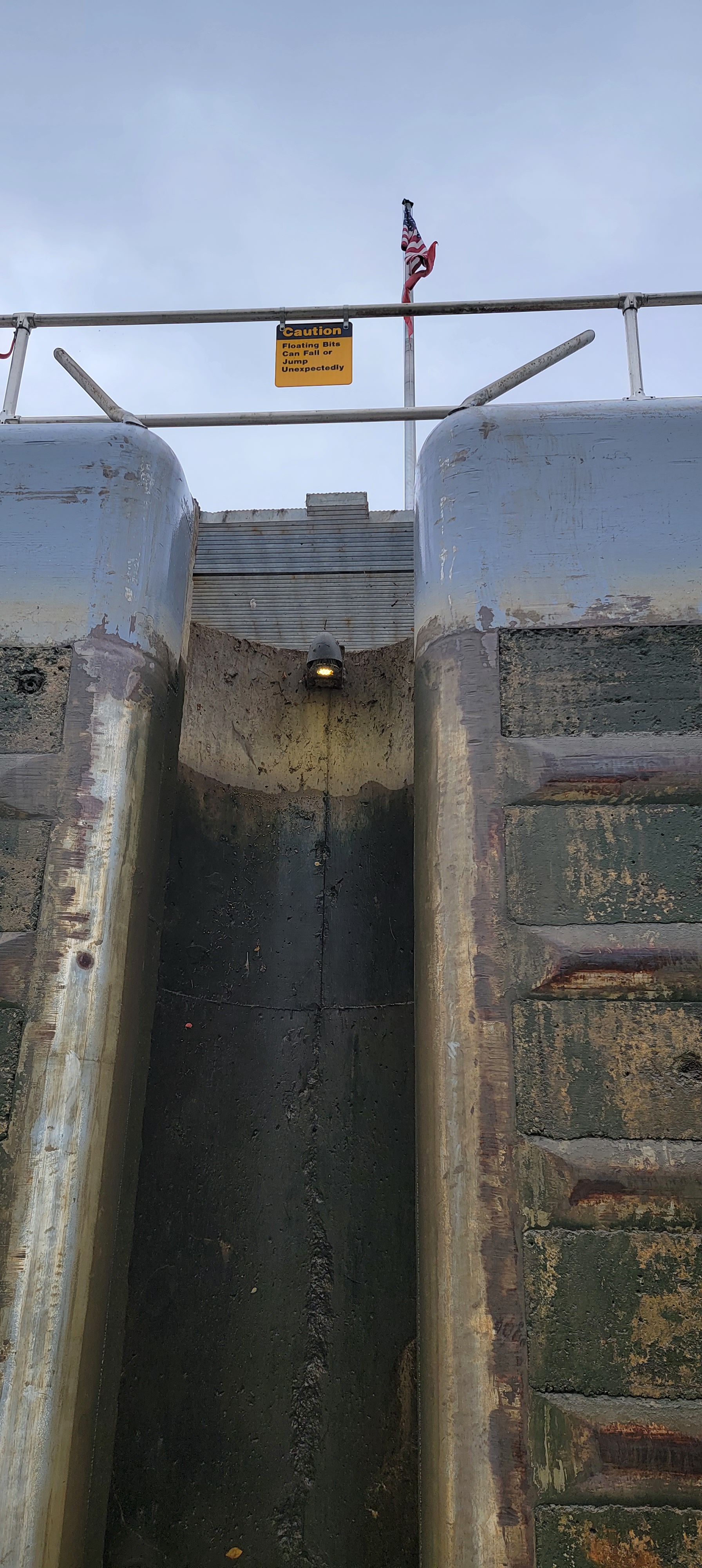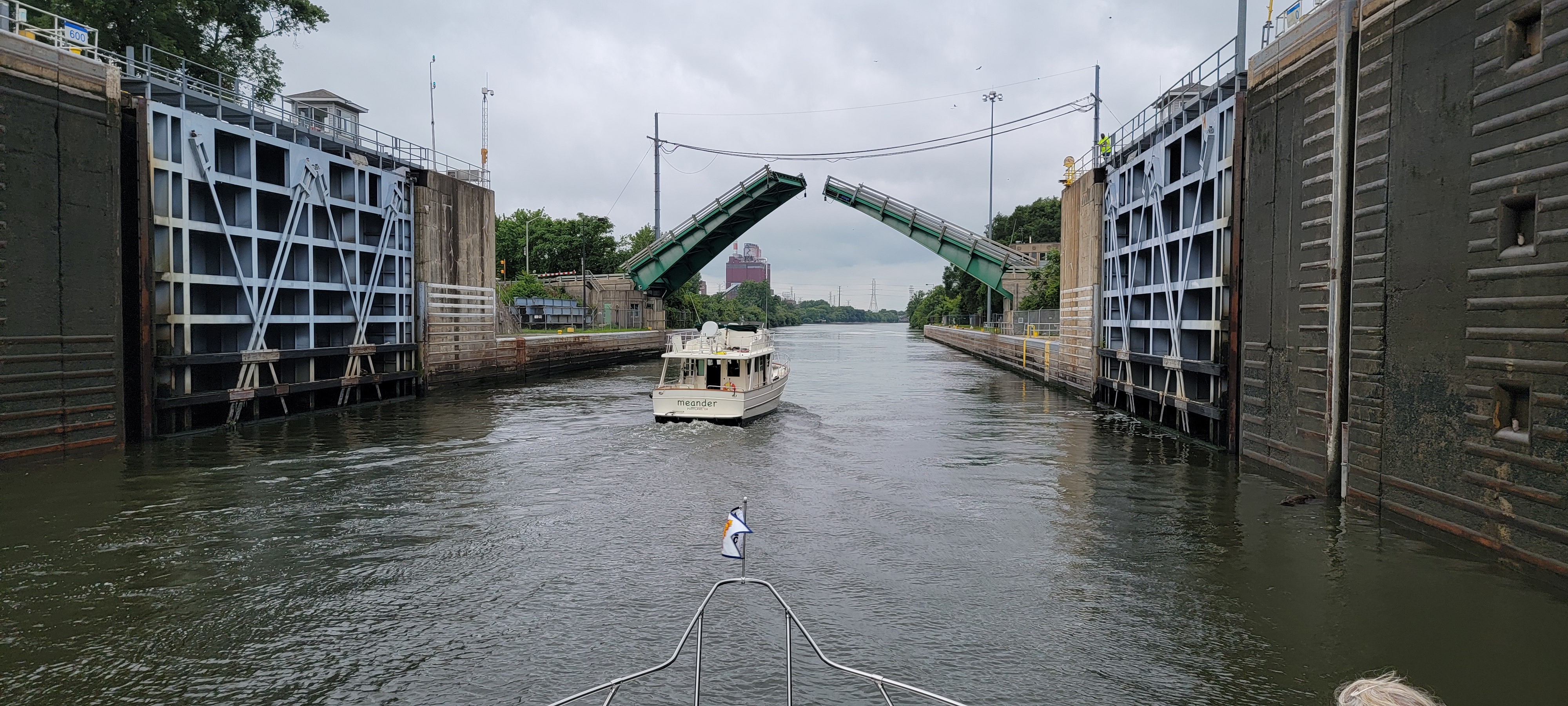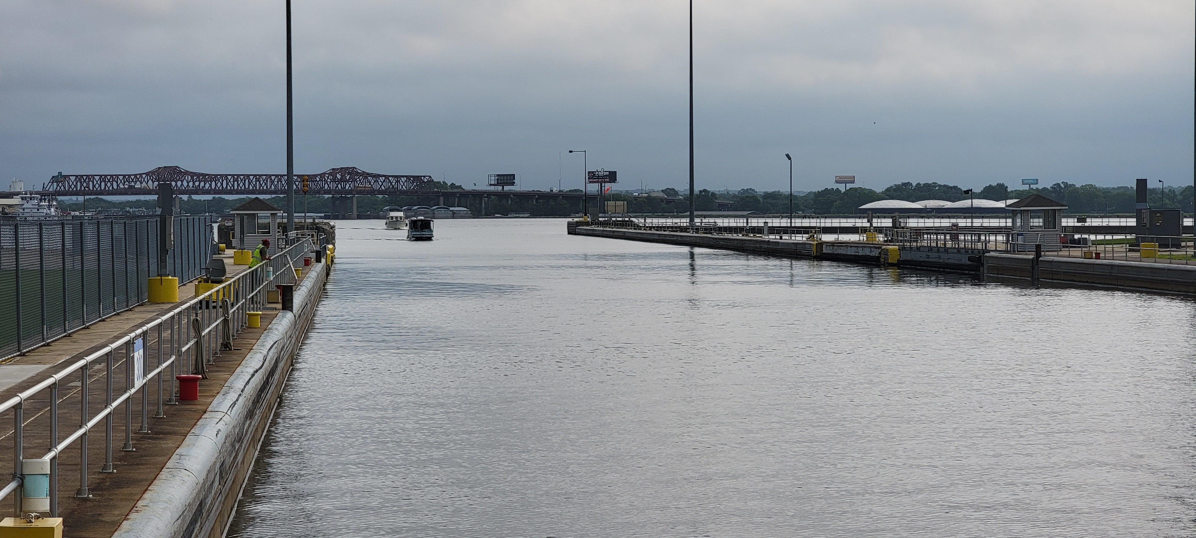 Leaving Brandon Road Lock with Brandon Road Bridge lifting