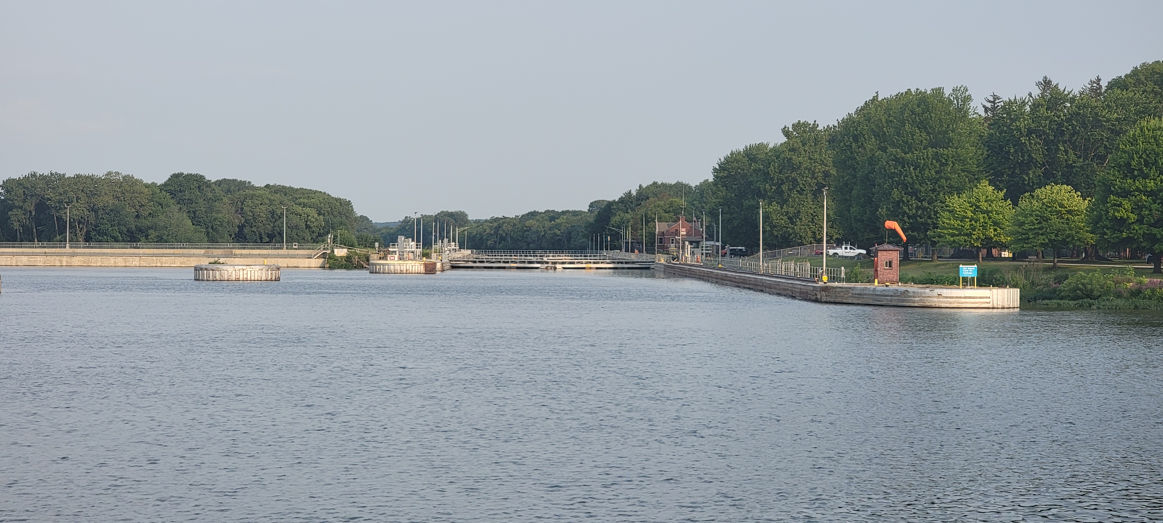 It was nice and dry by the time we got to Henry Island. The owners were kind enough to help us out with fuel and a pump out. The Henry Island lock is no longer a lock, but it’s a great place to stop for fuel, and there’s an attached marina. There’s room on the (rough) lock wall to tie up, and a floating dock for fuel. The restaurant nearby is closed and does not look to reopen for some time. The owners said there are food trucks there on weekends. It was a great stop, and the people there were fantastic.