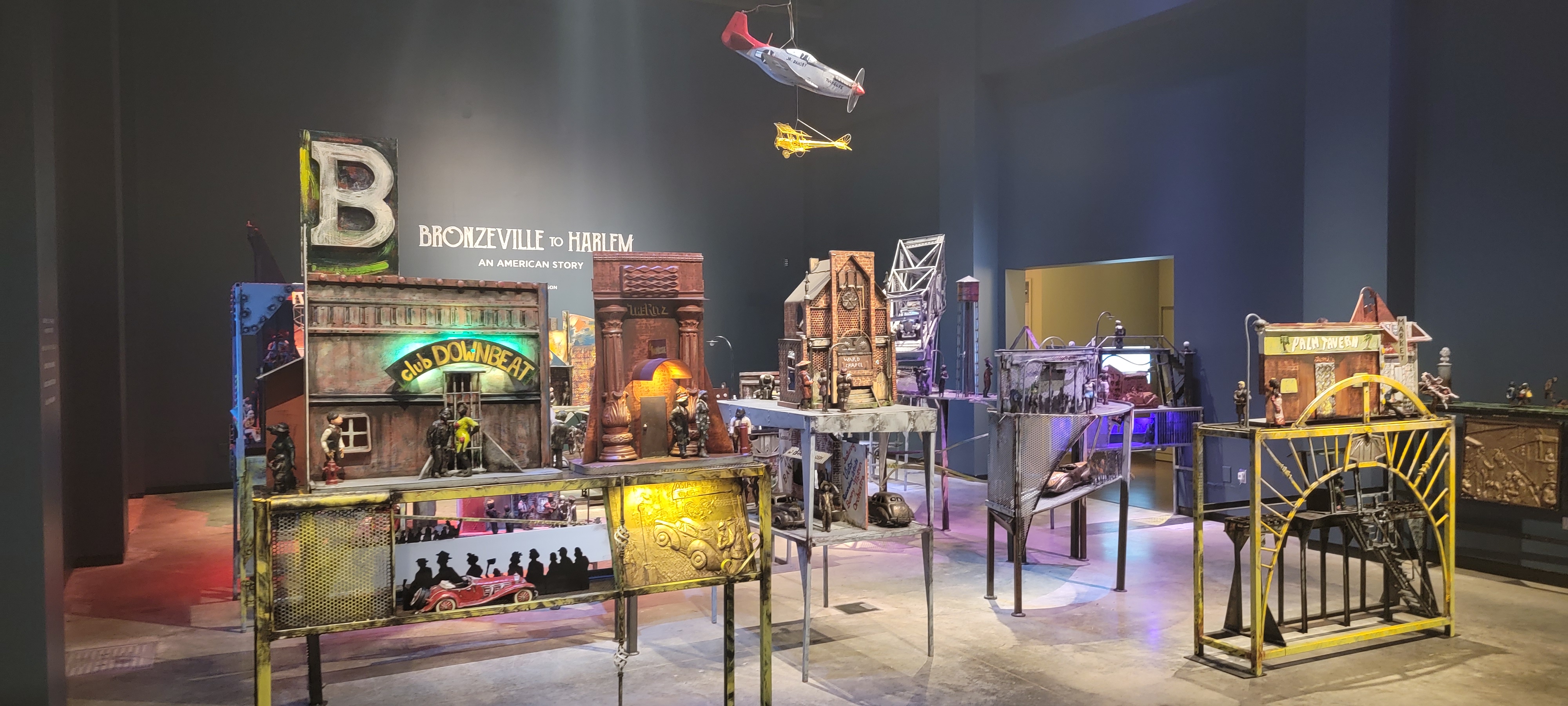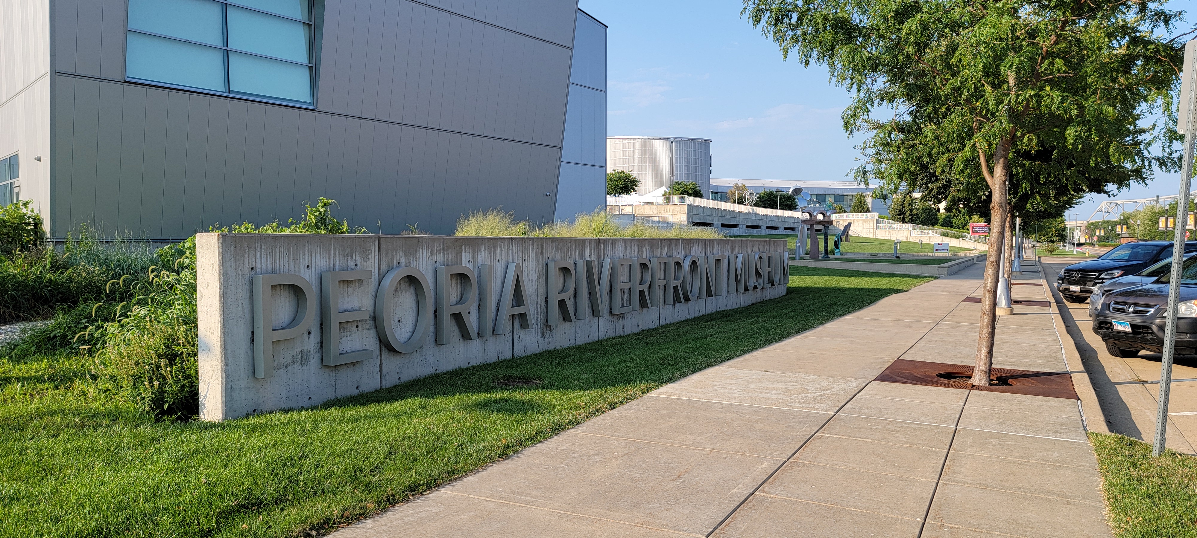 The next day, we had hoped to go to the Caterpillar museum, but it was (still) closed for Covid. Instead, we went to the Peoria Riverfront Museum. It’s a little bit of everything in one building–there’s a T rex exhibit, duck decoys, mounted butterflies, wall art, modern art, and a space part. I really enjoyed the Preston Jackson exhibit, and we liked the Planetarium. We spent a couple hours there, and that was plenty.
