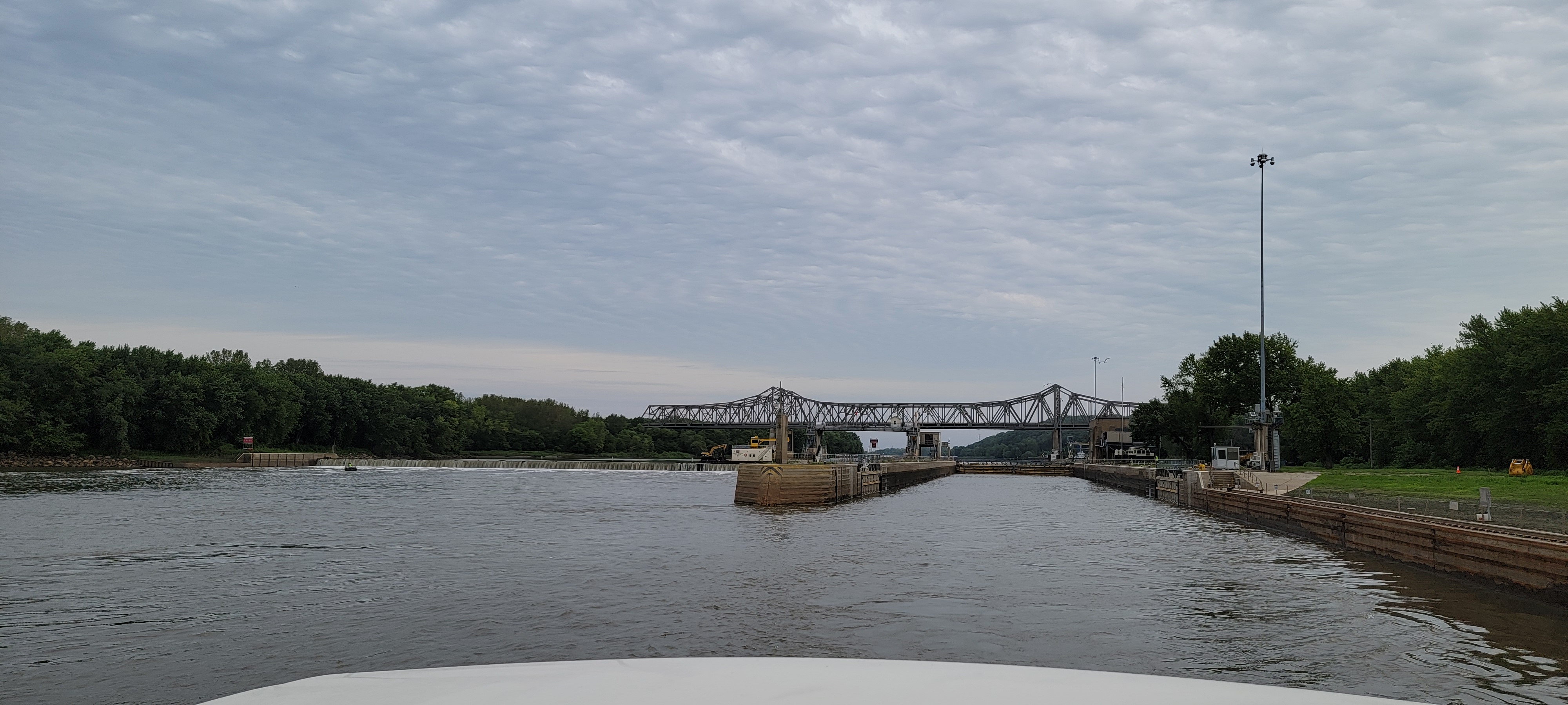 Our time in Peoria had to come to an end. We pushed pushed out at dawn for the 75 mile trek to Beardstown with one lock to navigate.