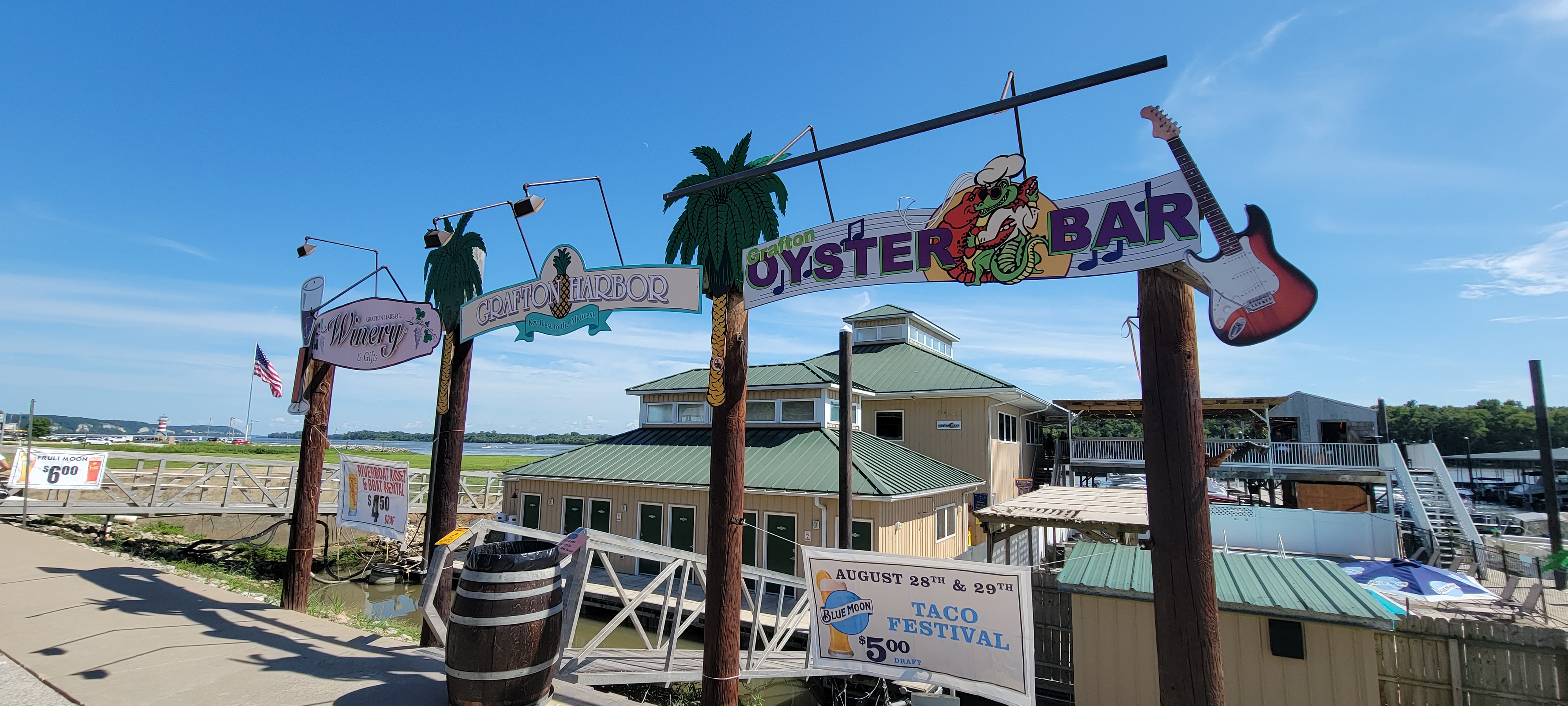 The amenities at Grafton Harbor are nice. They have decent showers, laundry facilities ($1.50 each to wash and dry), a well-appointed gift shop, a pool, and the Grafton Oyster Bar. They call themselves the Key West of the Midwest. The general idea is there. One thing this marina does not have, though, is fuel. Alton is the next stop with fuel, and Hoppie’s after that.