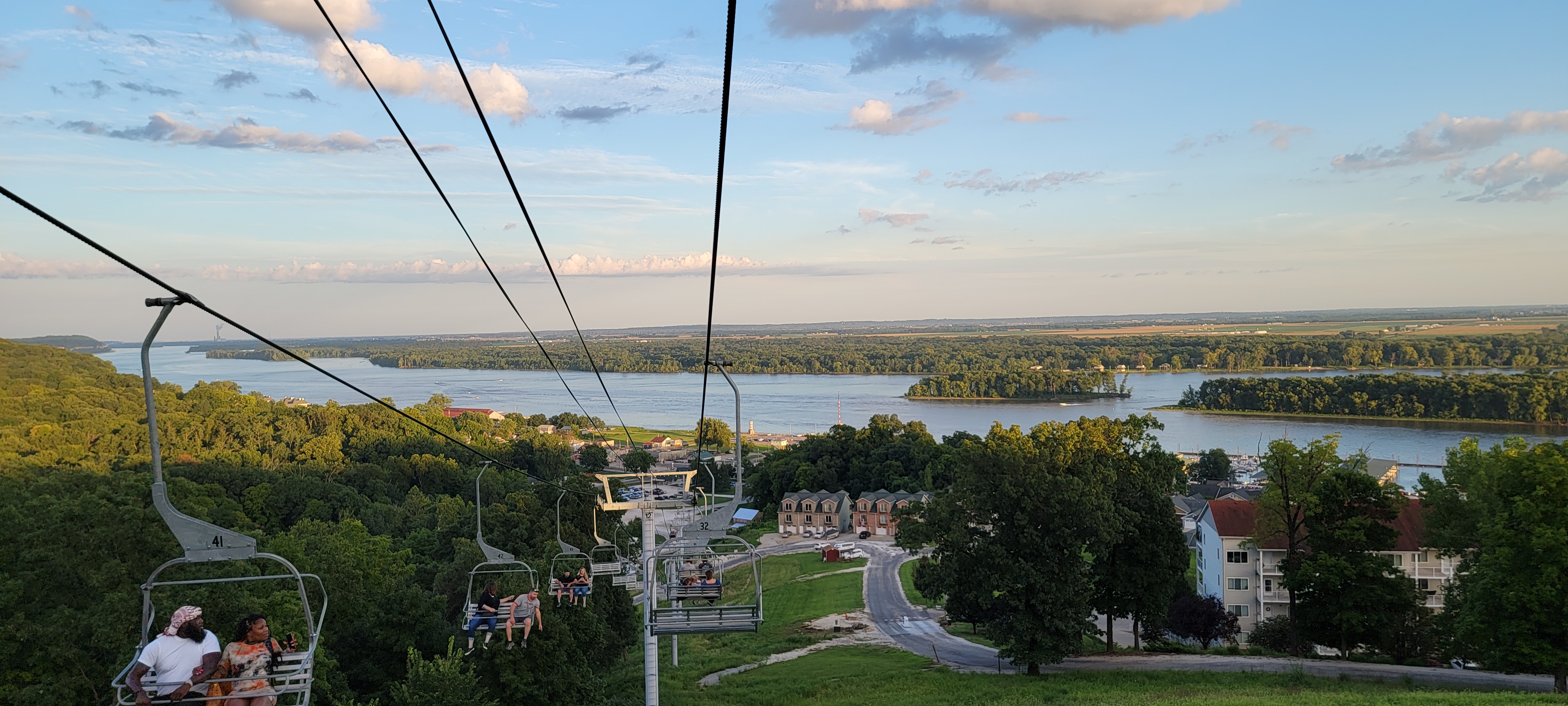 There are things to do within walking distance. I feel like I’m back in my Wisconsin home with so many bars in a small area. We went for a walk in the evening and found a “sky tour,” a chairlift/gondola ride to the top of a large hill. We didn’t know what was at the top when we bought a $10pp round trip ticket. It turns out there’s a winery and restaurant at the top. The ride up was just “whatever,” but the ride down was worth the price of admission–an overhead view of the confluence of the rivers. Just plain beautiful. Everything is lush and green here now, but I would imagine the fall provides an absolutely breathtaking view. But those who travel through in the fall will not get this cool shot of our boat.