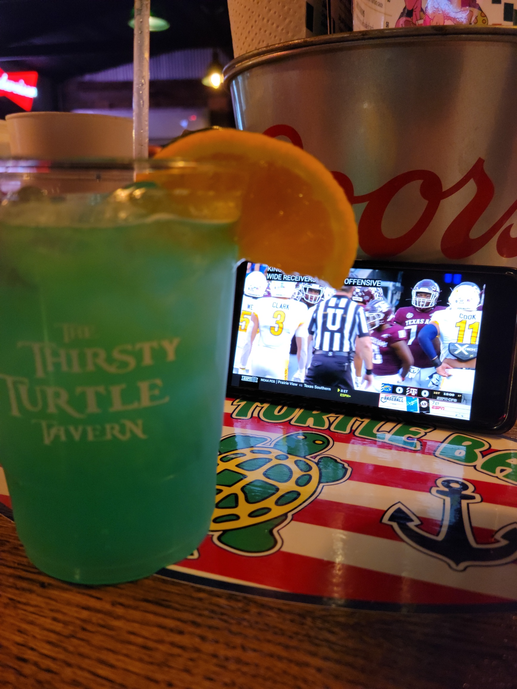 We also put the dinghy down (we call it “Dot”) and toured around a little. Finally, on the last night, we walked over to the Thirsty Turtle for some food, fun, and watching the Aggie game on my phone because that’s how we roll.