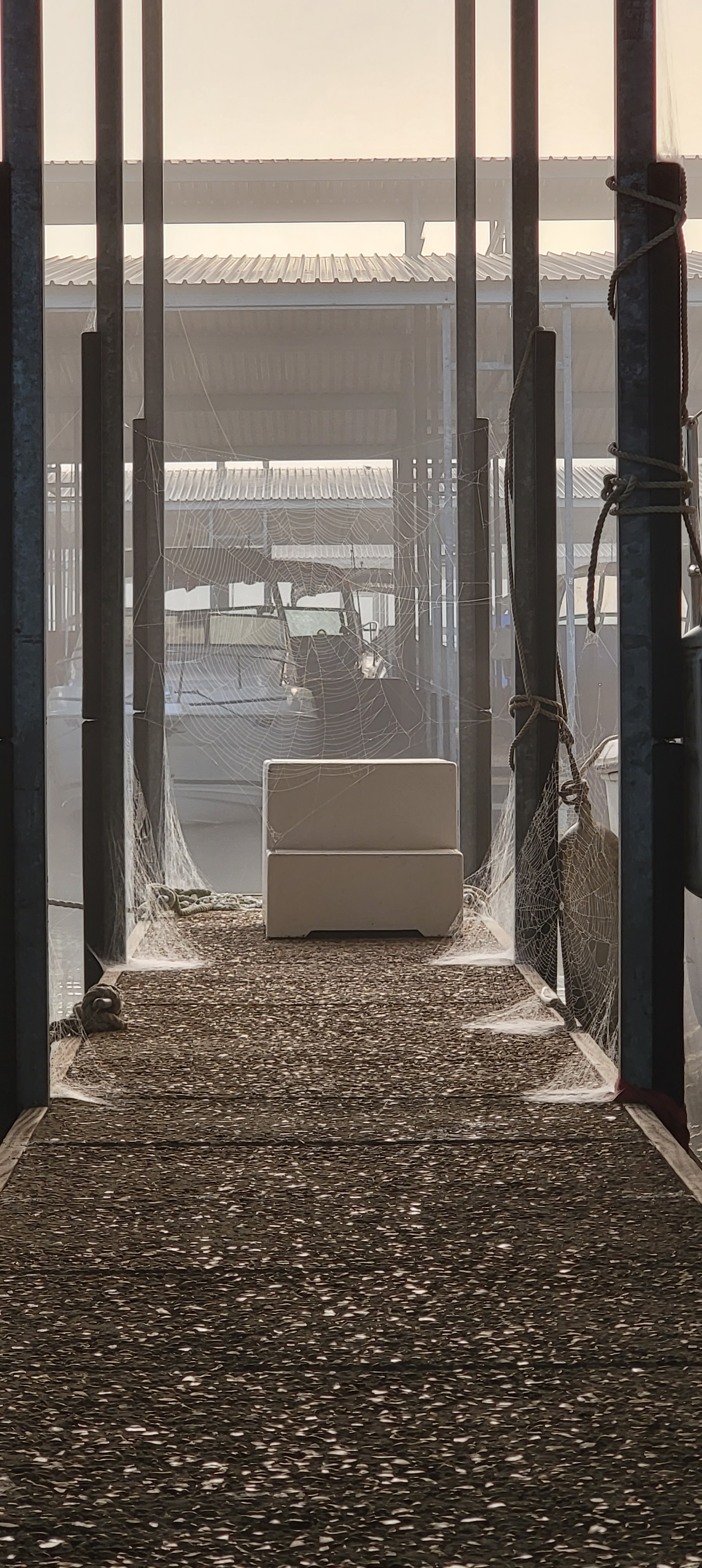 Dock spider webs in the mist