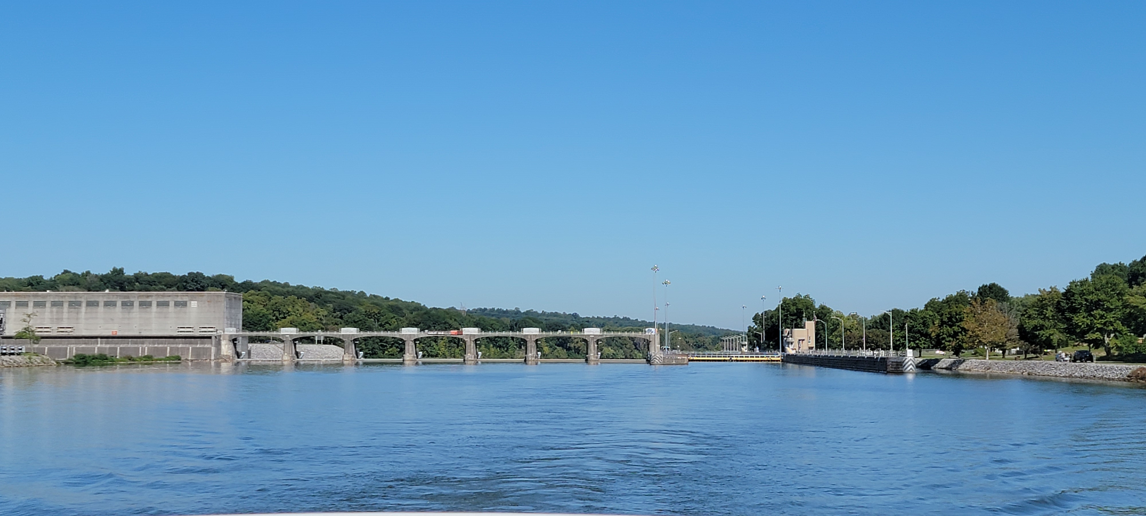 The Cheatham lock is about 21.5 miles upriver from Clarksville. Once we were underway, I called the lock master to see what the traffic looked like. He said that they had even closed since midnight for fog. There was one tow up river, one down river, and one in the lock. Oh boy…