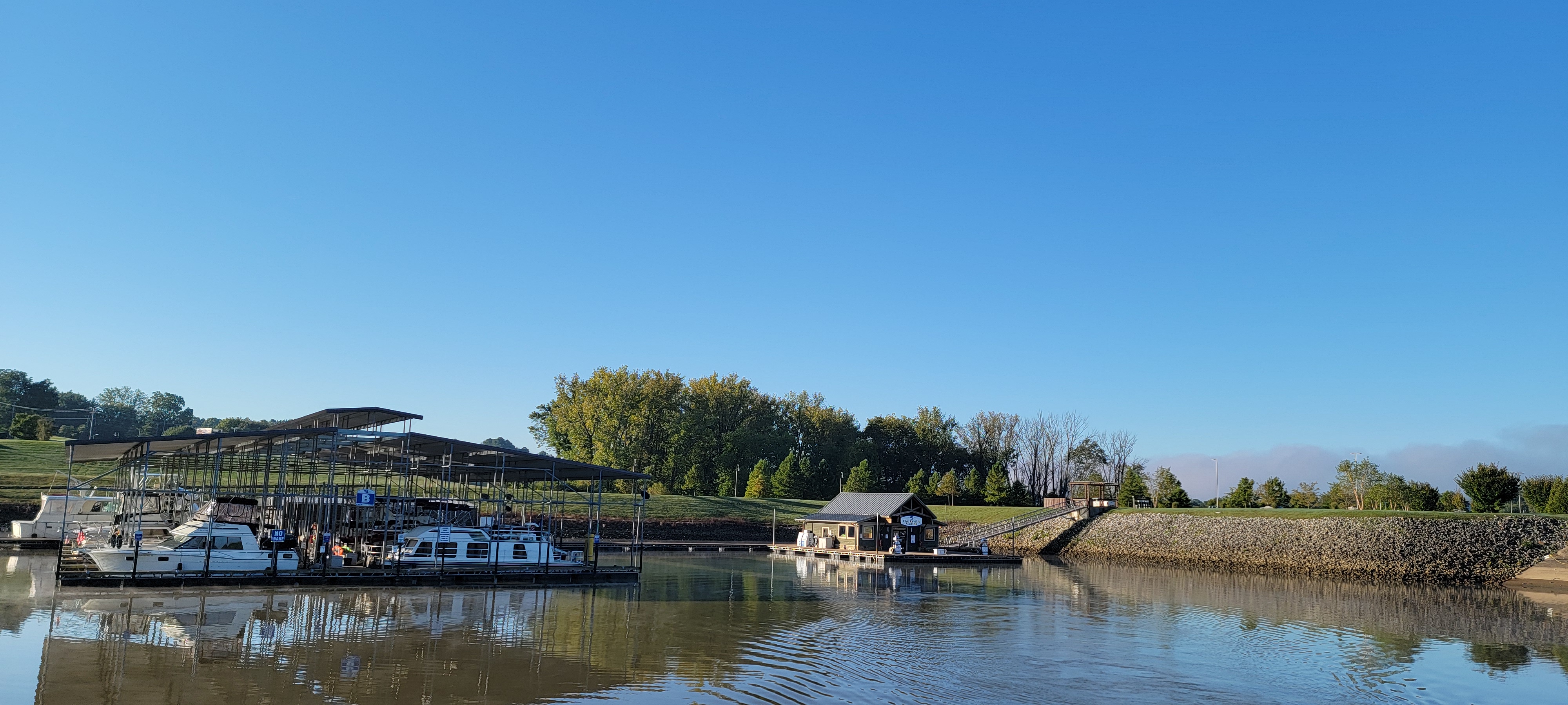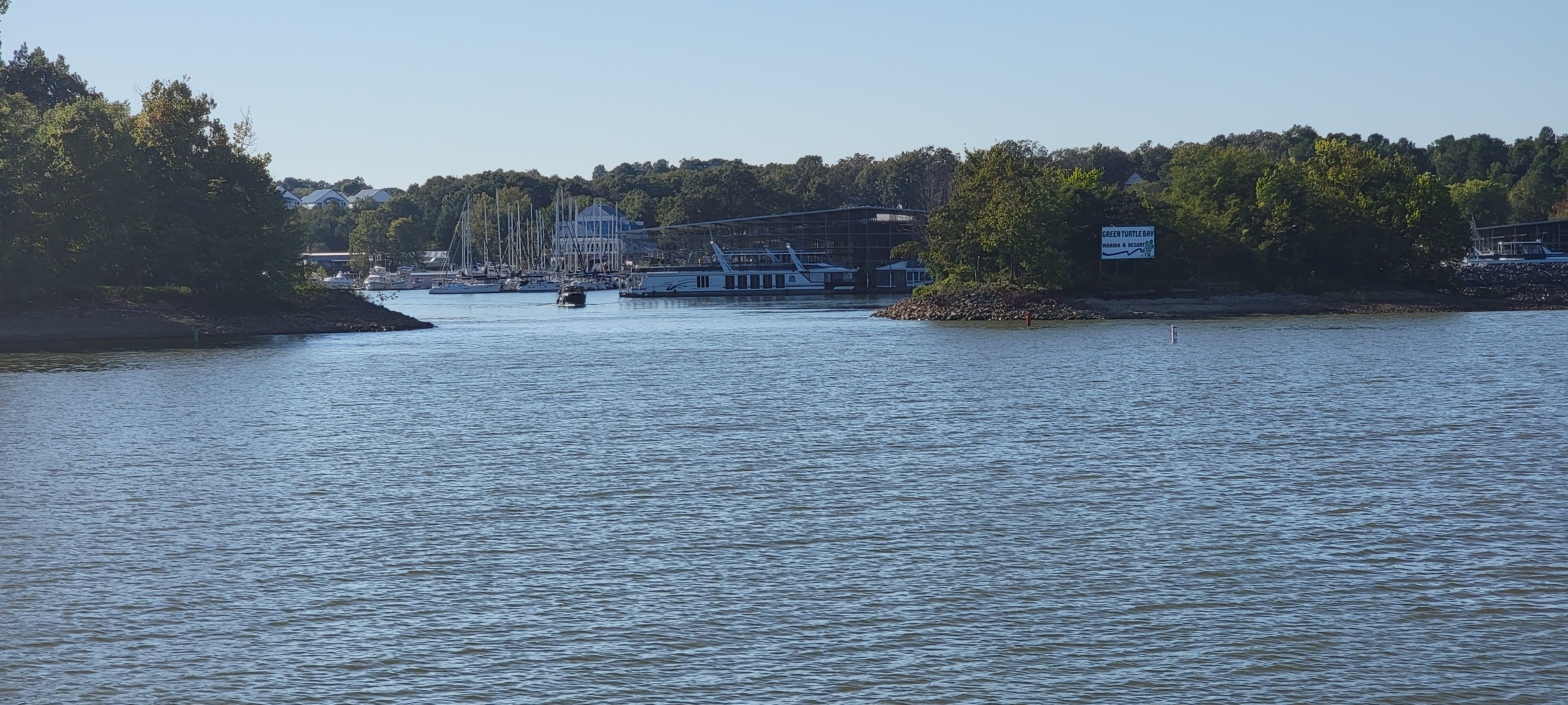 We got up early to get a 0700 start on the 94 mile trip from Clarksville to Green Turtle Bay resort. There was a dense fog on the water, so we went back to bed for a little while. By 0800, the fog was mostly clear, so we set out. Clarksville was good to us, but it was time to get some more water under our keel.