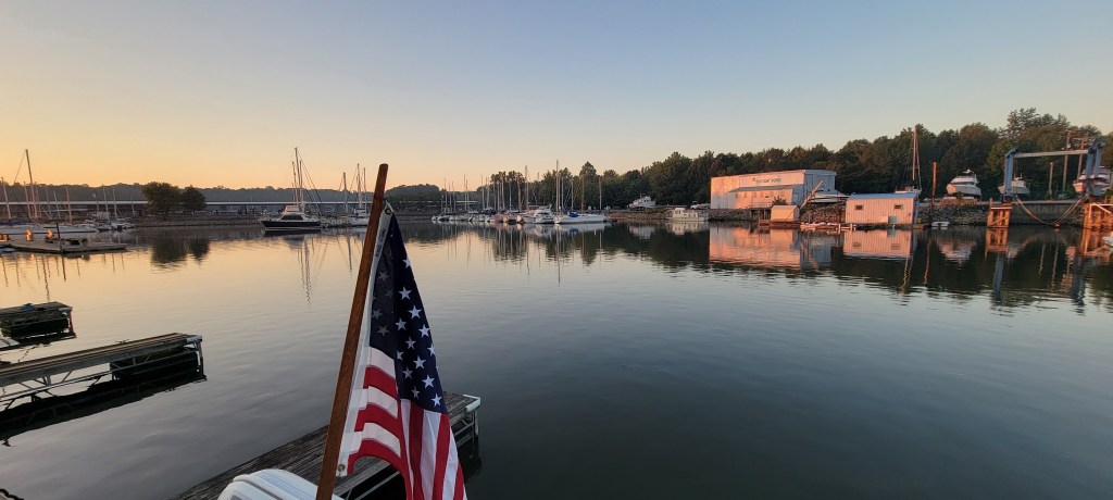 At the fuel dock, Clay, who filled our boat, put on a masterclass on line tying. Holy cannoli. He took our line and wrapped it quickly with a few flicks of his wrists, slapping the line against the ground to get it to go expertly around the cleat. I wanted to untie it just to see him do it again! I’ll admit there was a little practice happening on the dock afterward. I haven’t mastered it yet, but I will! Also at the fuel dock, we had a pump out. It was the first pump out we’ve had with a clear hose. Whose idea was that?!