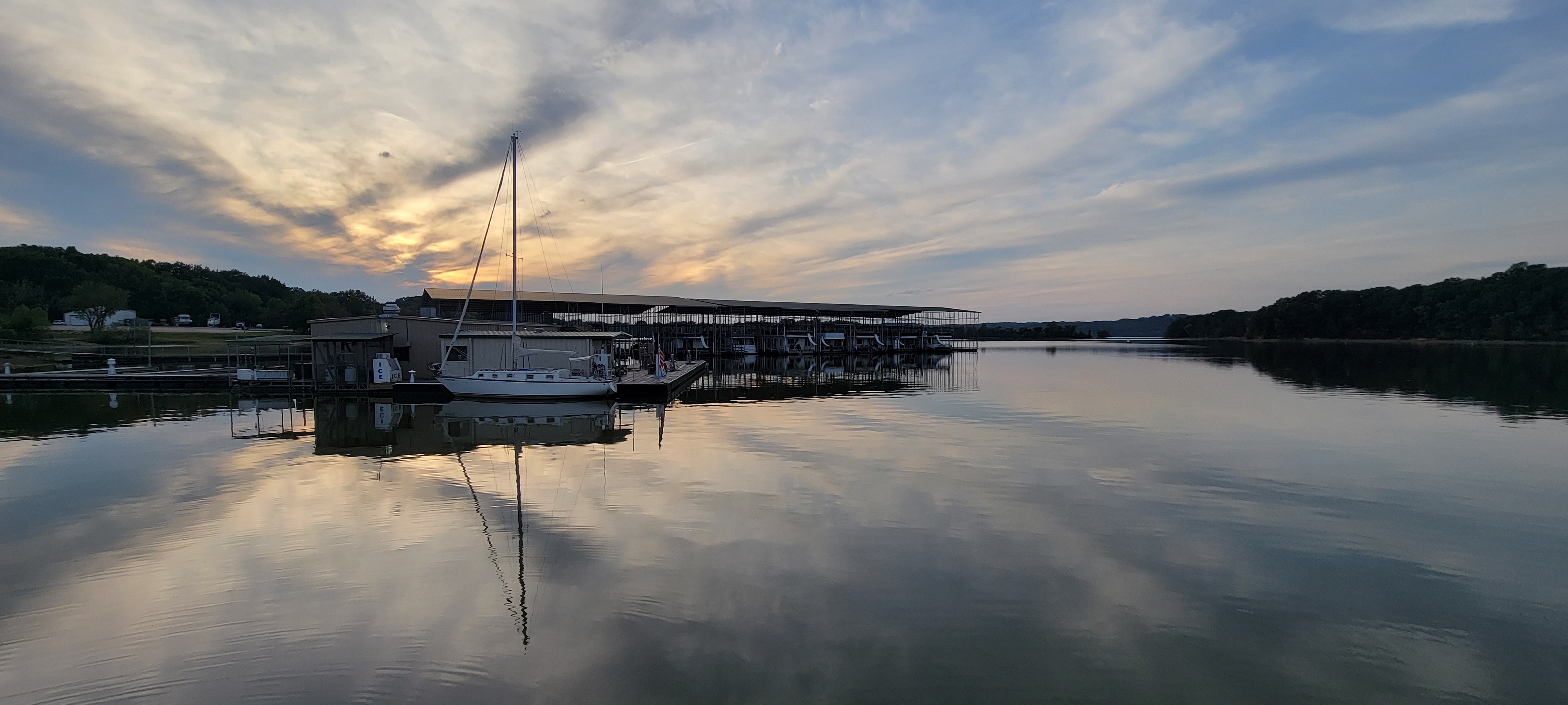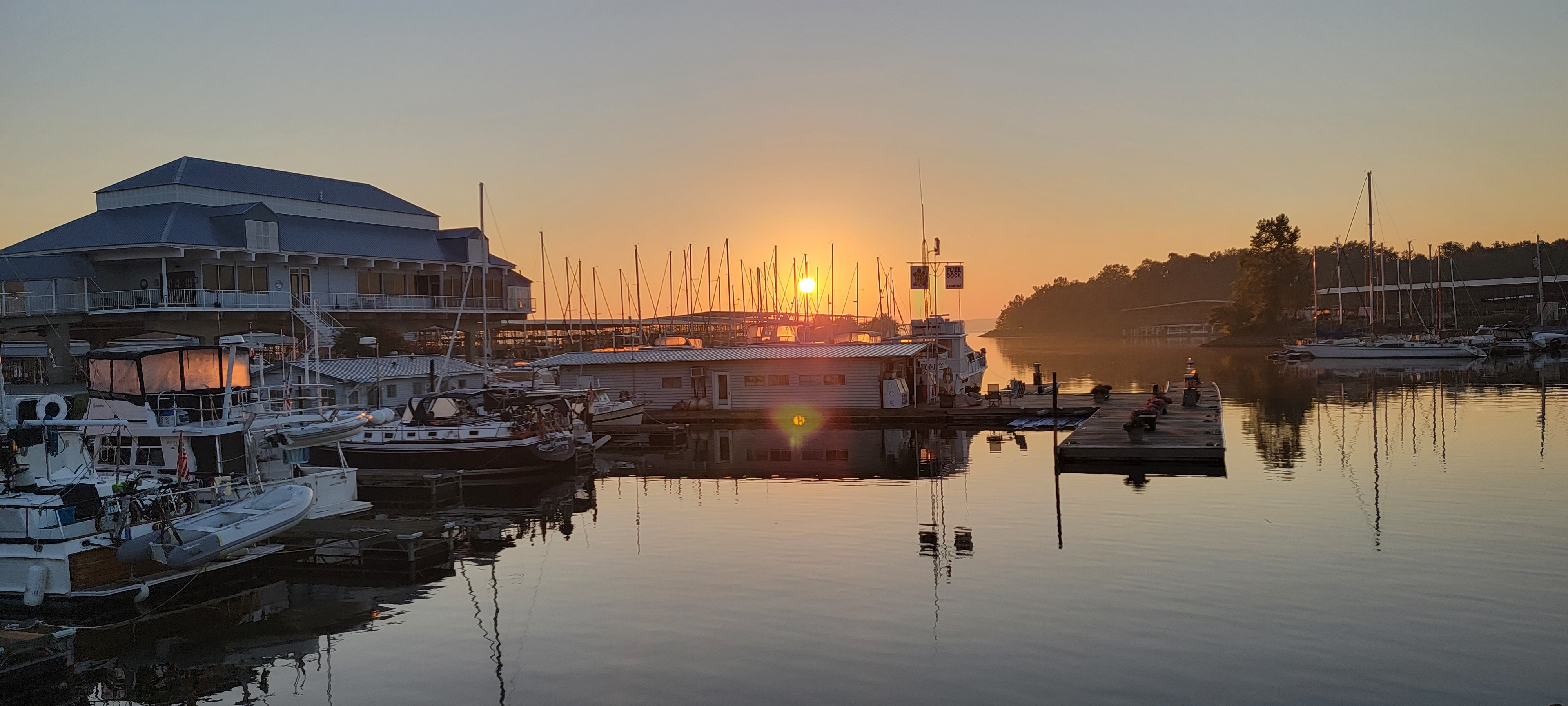 What a beautiful day to be on the water! We left GTB (We’ve been there awhile. We can call it by its initials.) at 7:00 underneath a stunning sunrise. This time, we turned right out of the marina and right again into the channel between Barkley and Kentucky Lakes for our first time on the Tennessee River. The water was flat, and the trees were just hinting that they are about to start to turn. We followed advice we received from others: stay in the channel! On this leg, we left Kentucky for good and entered Tennessee.