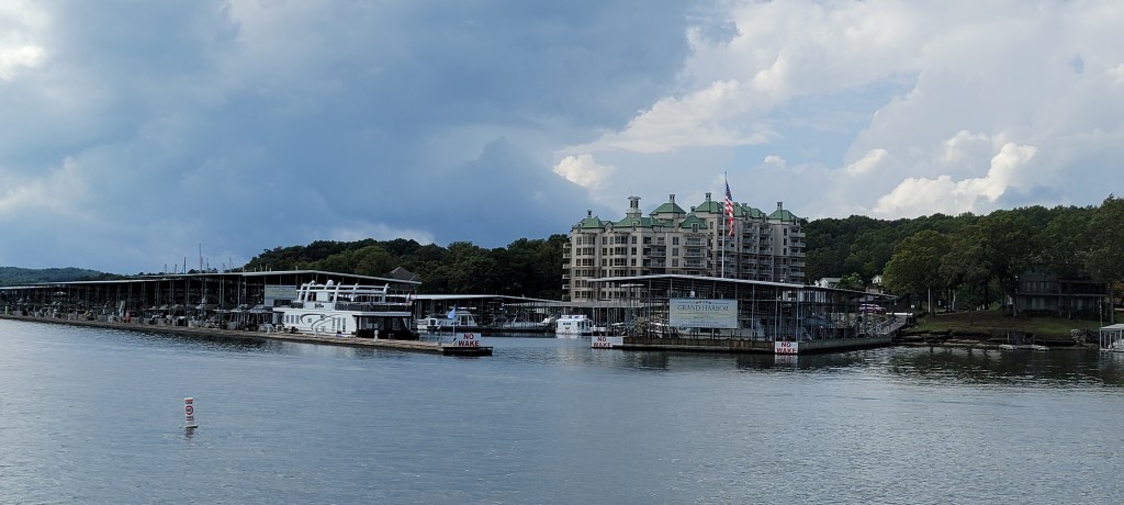 After clearing the lock, the magnificent Pickwick Lake opened before us. We went the short cruise to Grand Harbor on plane to work out the Cats, fueled up, and docked behind Auntie Gail for the night – after Docktails, of course!