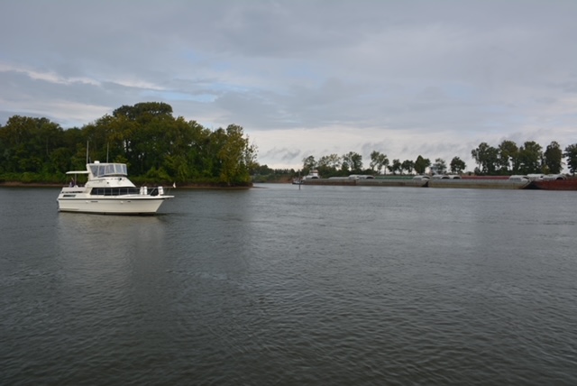 The cruise to Pickwick was easy. We enjoyed the scenery. We noticed Tick Tock on the AIS up ahead of us a few miles and figured that we would catch up to them before the lock. At Wolf Island, near Crump, Tick Tock hailed us. There was a tow coming around the bend and they decided to tuck up out of the way and advised us to do the same. Who are we to argue with Gold Loopers!? We waited for the tow to pass and then proceeded to take the lead.