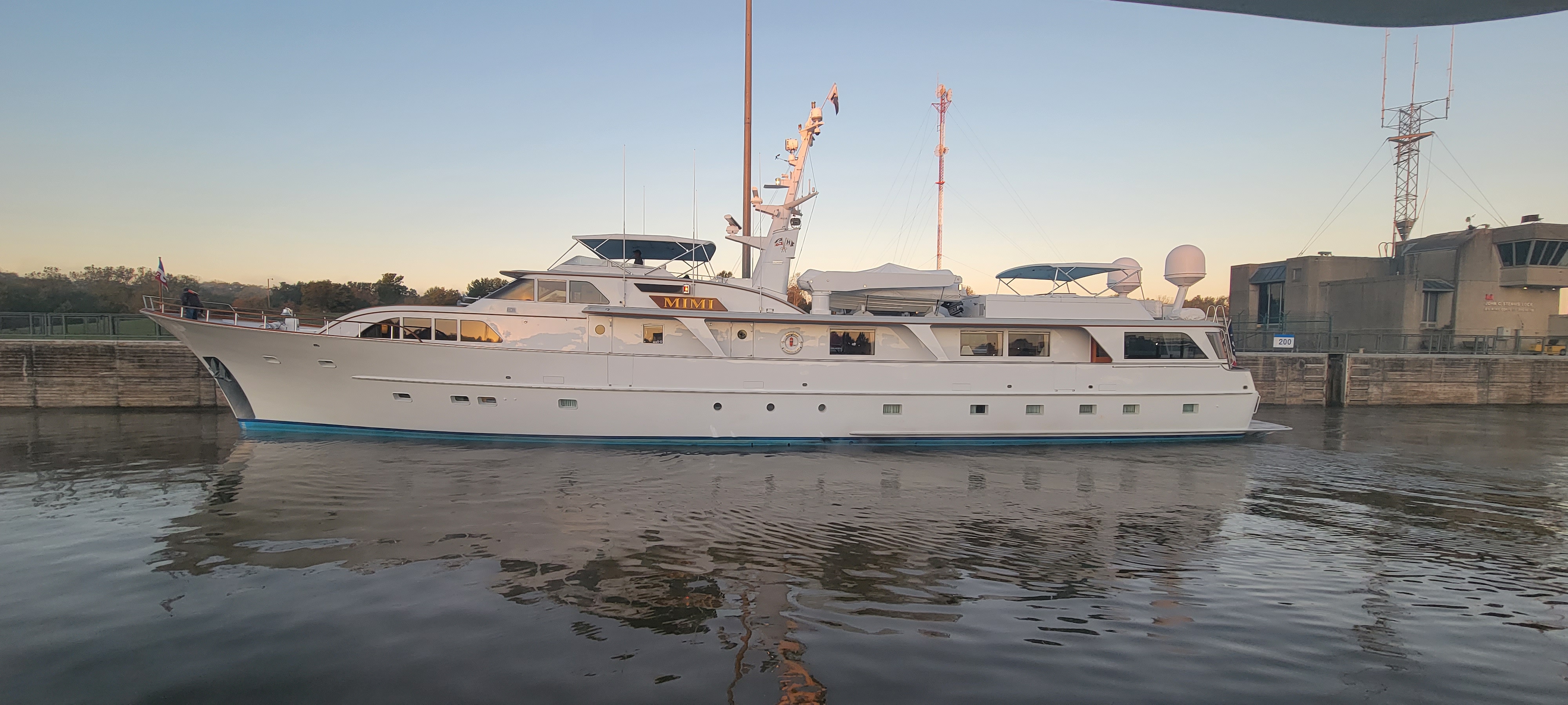Then we saw another boat coming. We could see that it was big, but it didn’t look like a commercial vessel. Nope, it was a 125′ yacht! It was fun to see a different kind of boat.