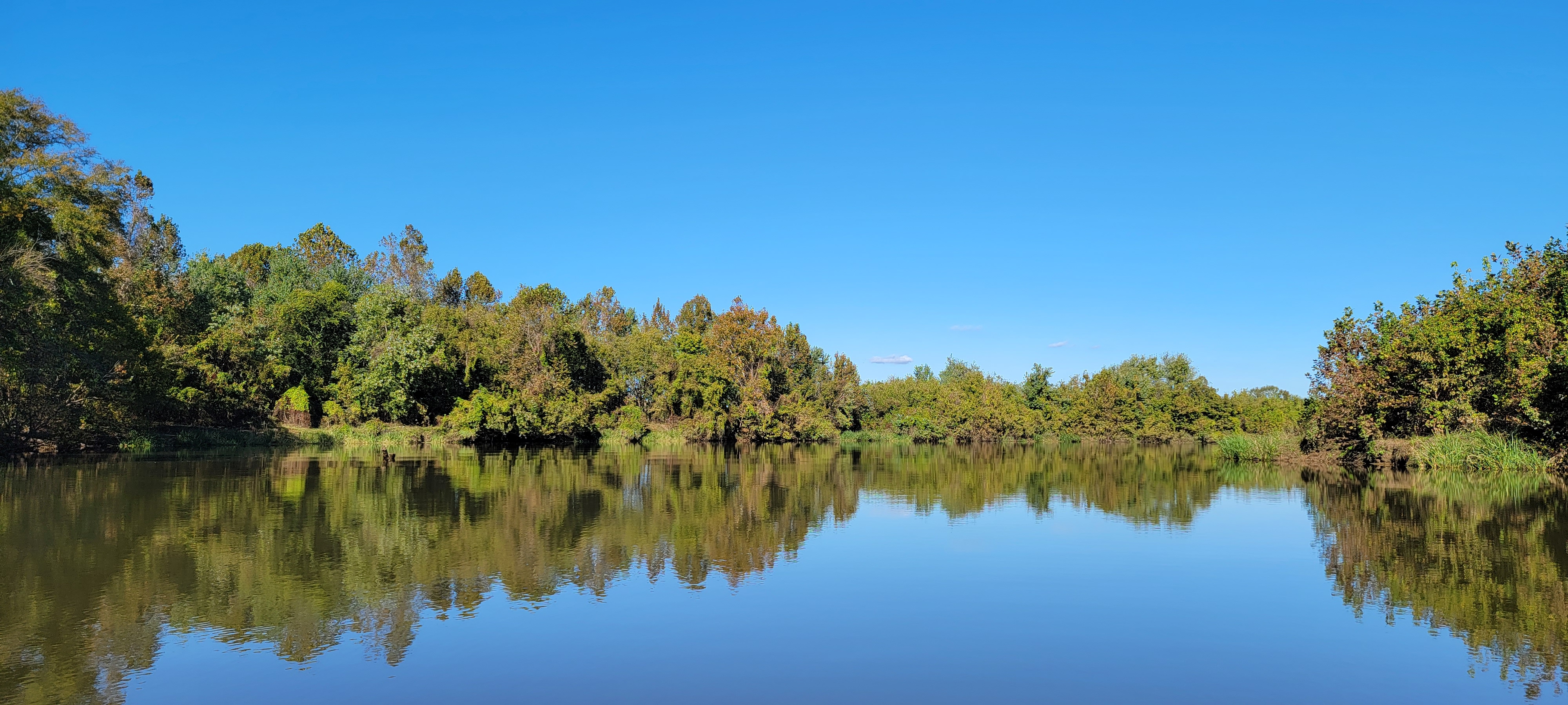 After a few cloudy and rainy days, it was nice to see the sun again. We will always appreciate the calm, sunny days that allow a perfect reflection of the trees in the water. We also saw a small deer swimming across the river.