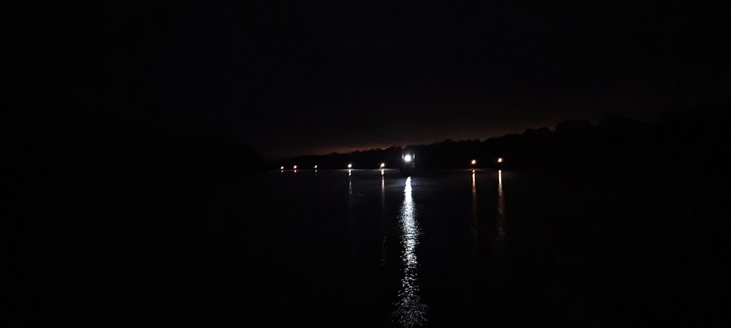 We woke up at 0600 like usual to prepare for a dawn departure on the final 56 miles of the Inland Water segment of the Great Loop. It was a very peaceful night. The twinkling of the eight other anchor lights off our bow looked like grounded stars. It was cloudy and 48 degrees with a light breeze. The day promised a high of 67 degrees with overcast skies.