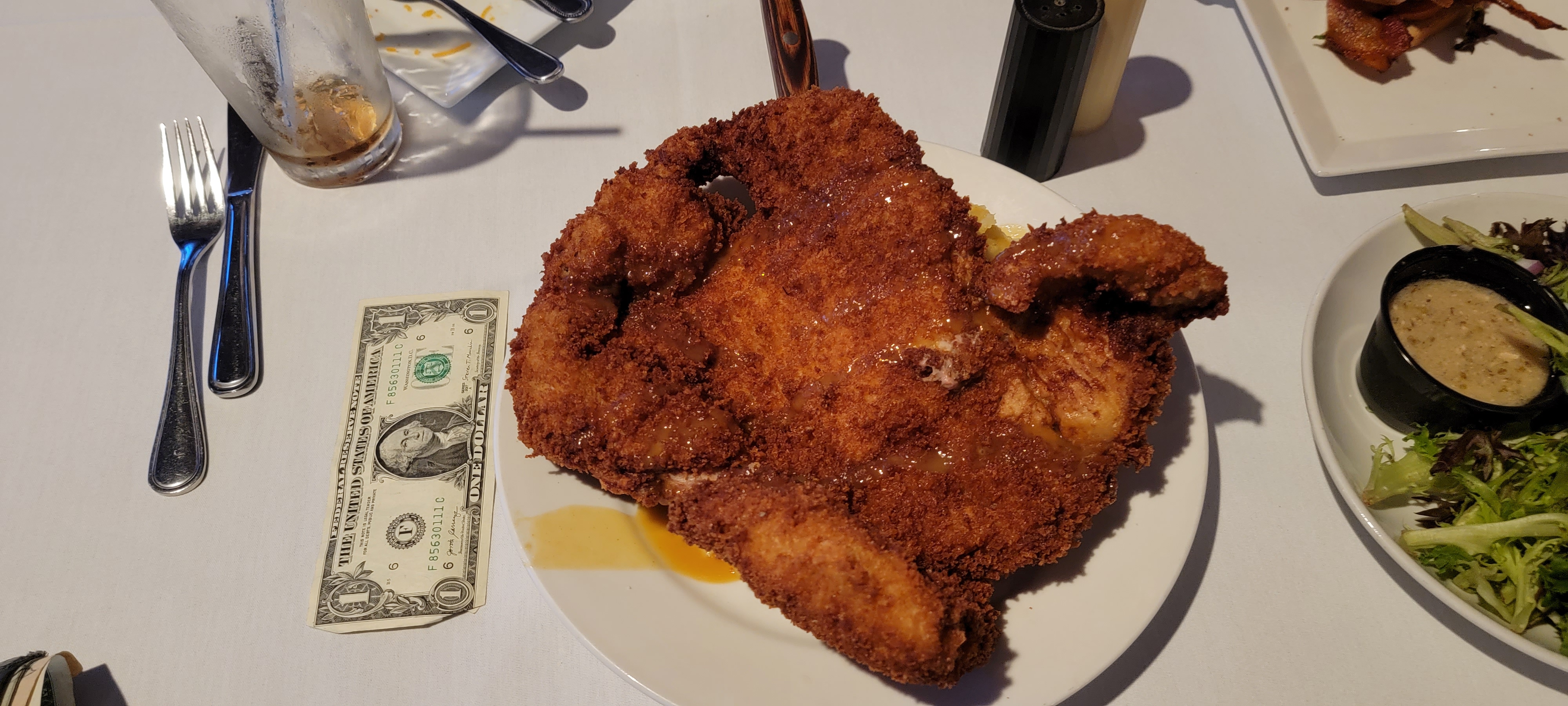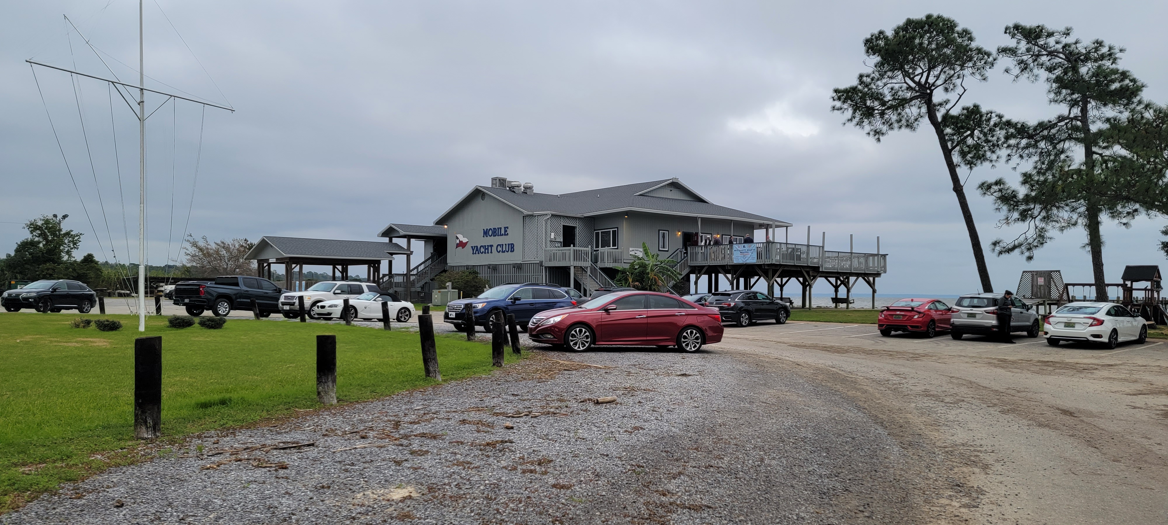 The courtesy car was booked, so we walked across the street to the Mobile Yacht Club for dinner. What a gem! I had about a third of a schnitzel that was as big as my head as we enjoyed the panoramic view of Mobile Bay.