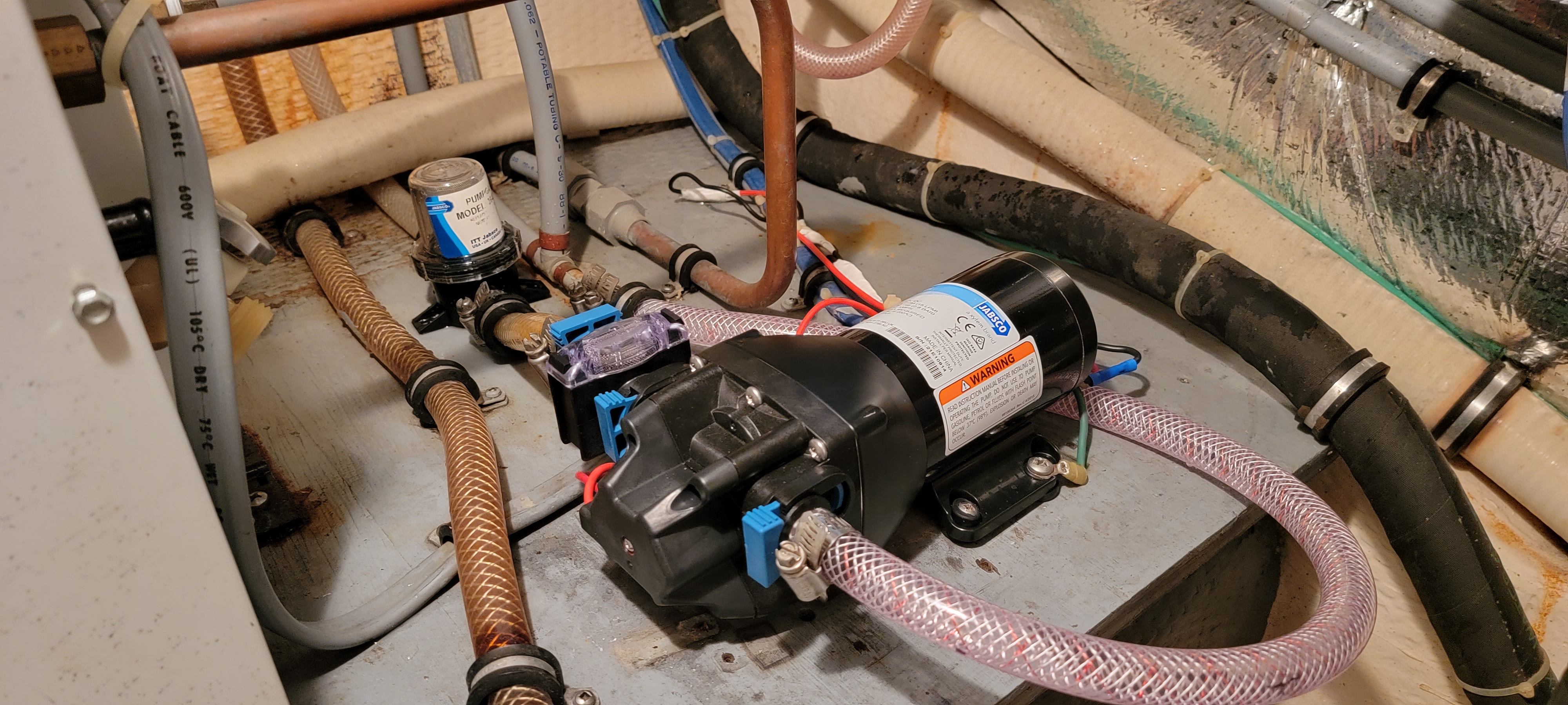 As you might remember, we had to fix our fresh water pump a while ago. I managed to rebuild one with spare parts on board. Well… it lasted until this week.