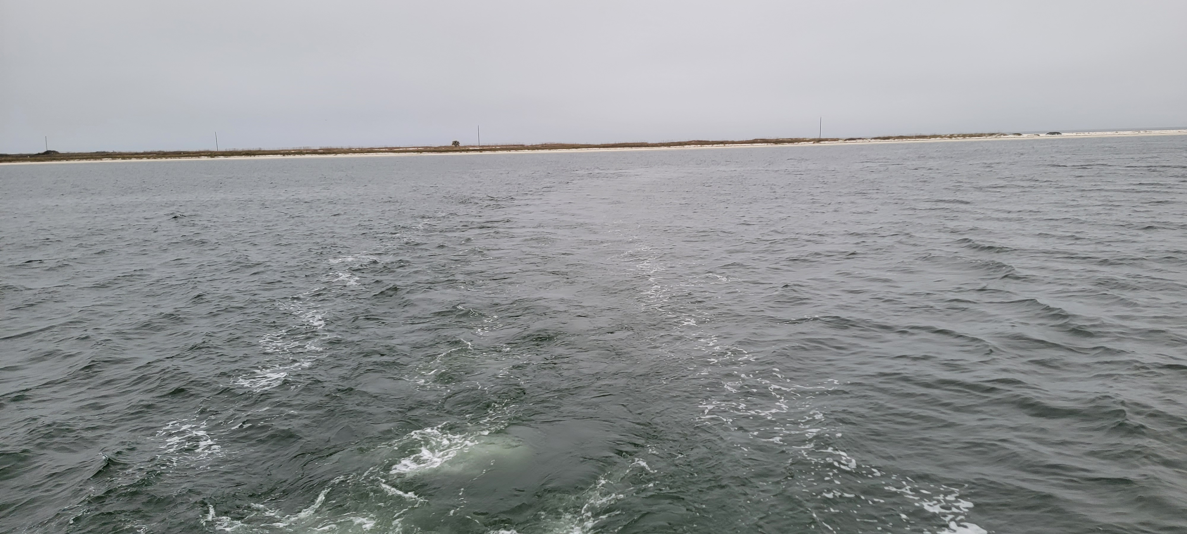 At dawn, we moved into a fog and the waves picked up again. They weren’t as bad as before, but noticeably choppier. We kept an eye on the radar and set a course to stay in at least 50 feet of water (very few crab pots that deep) and turn perpendicular into the inlet.