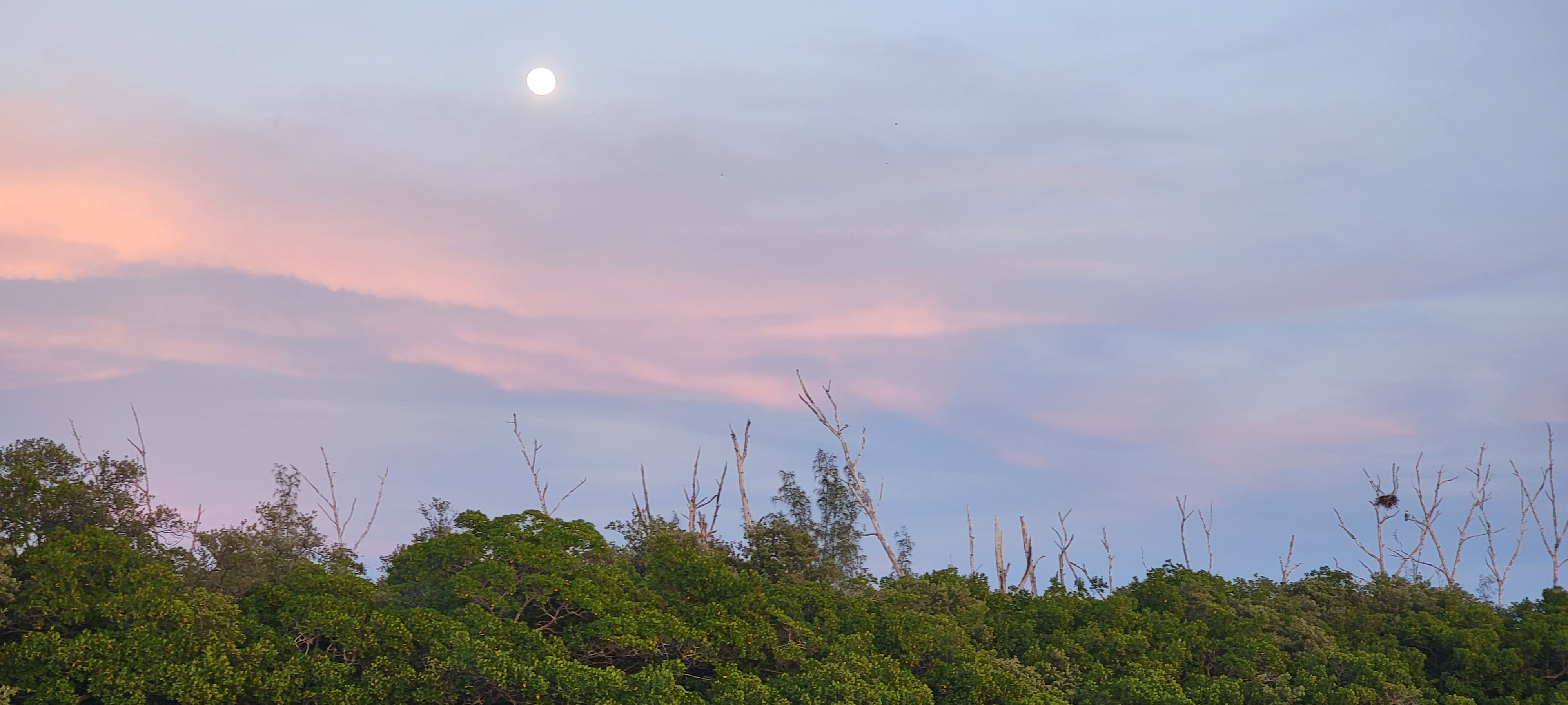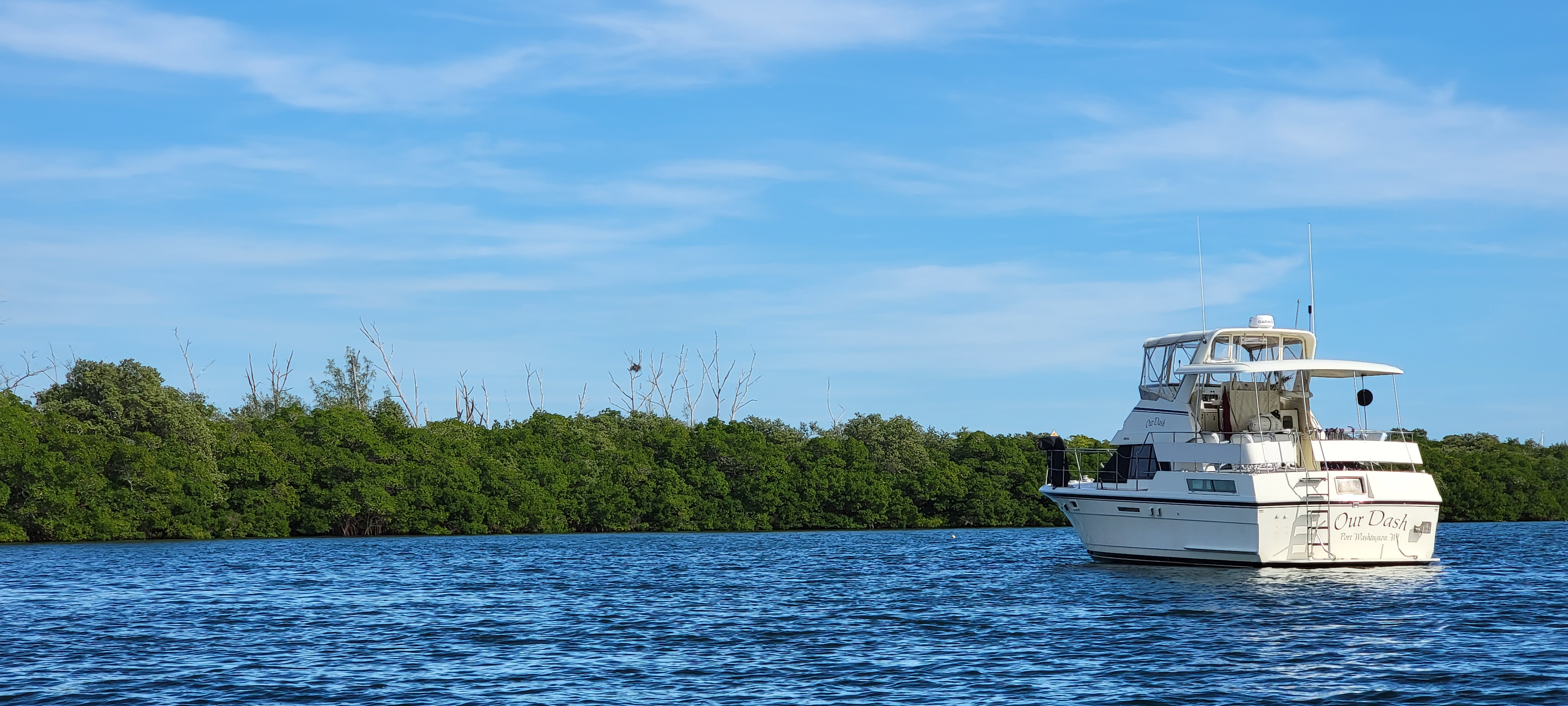 The anchorage was empty when we arrived. We chose a spot just past the shipwreck and tucked between two buoys. Otter Key is unoccupied, but a row of beautiful homes lined the coast of the opposite side of the anchorage.