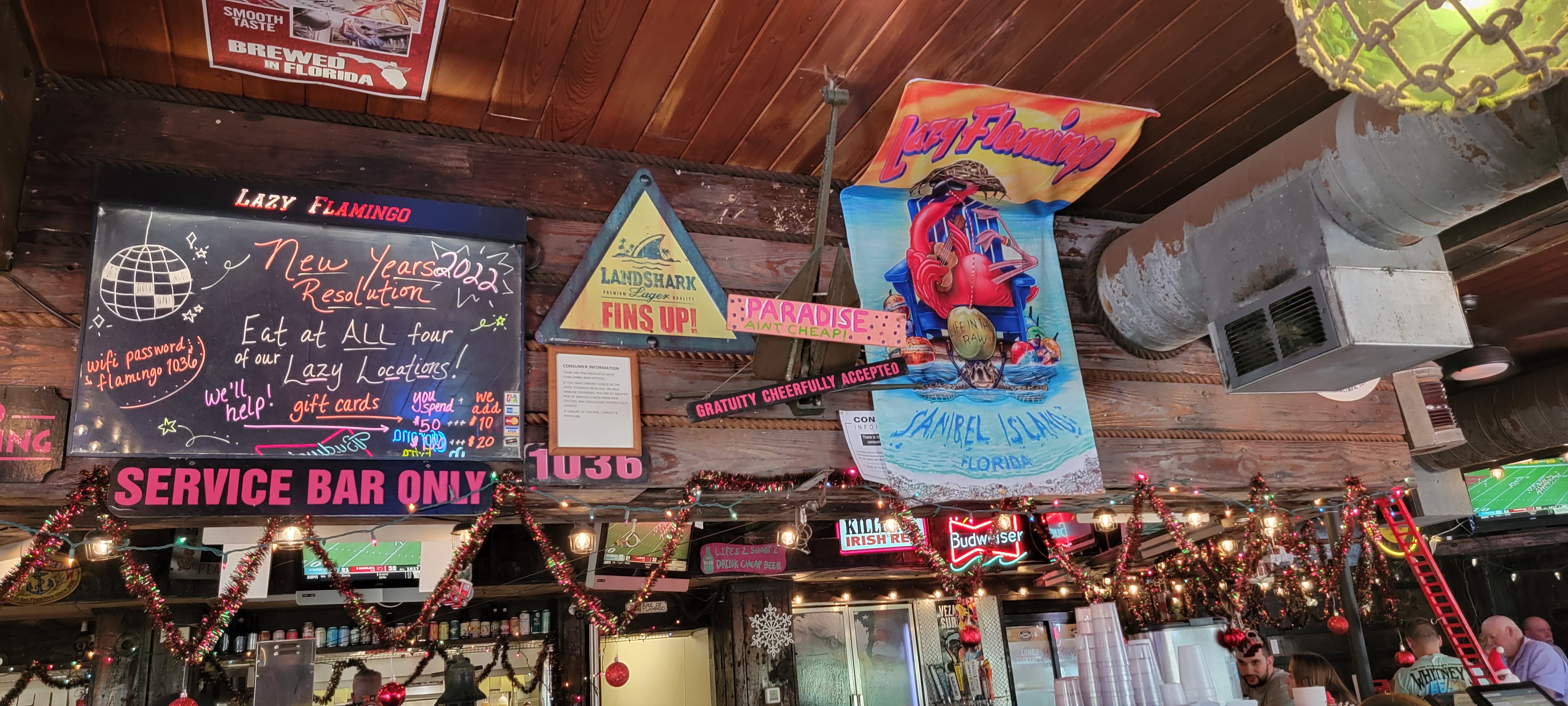 At night we stepped outside when we heard fireworks in the distance. What a surprise to also see dolphins around the boat! They kept their distance, but we could hear them breathe. It was a glorious few minutes watching them surface, seeing the bright stars in the cloudless sky, and admiring the fireworks visible on the horizon. Then the mosquitoes came and put a quick end to the outdoor portion of our New Year’s Eve. Sanibel island was a great place to end 2021!