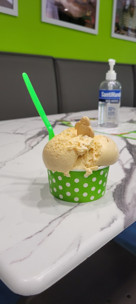 We rode a bit more and came to Periwinkle Place, a collection of shops. We went in a few and stopped at Pinnochio’s Ice Cream. We indulged. It was good.