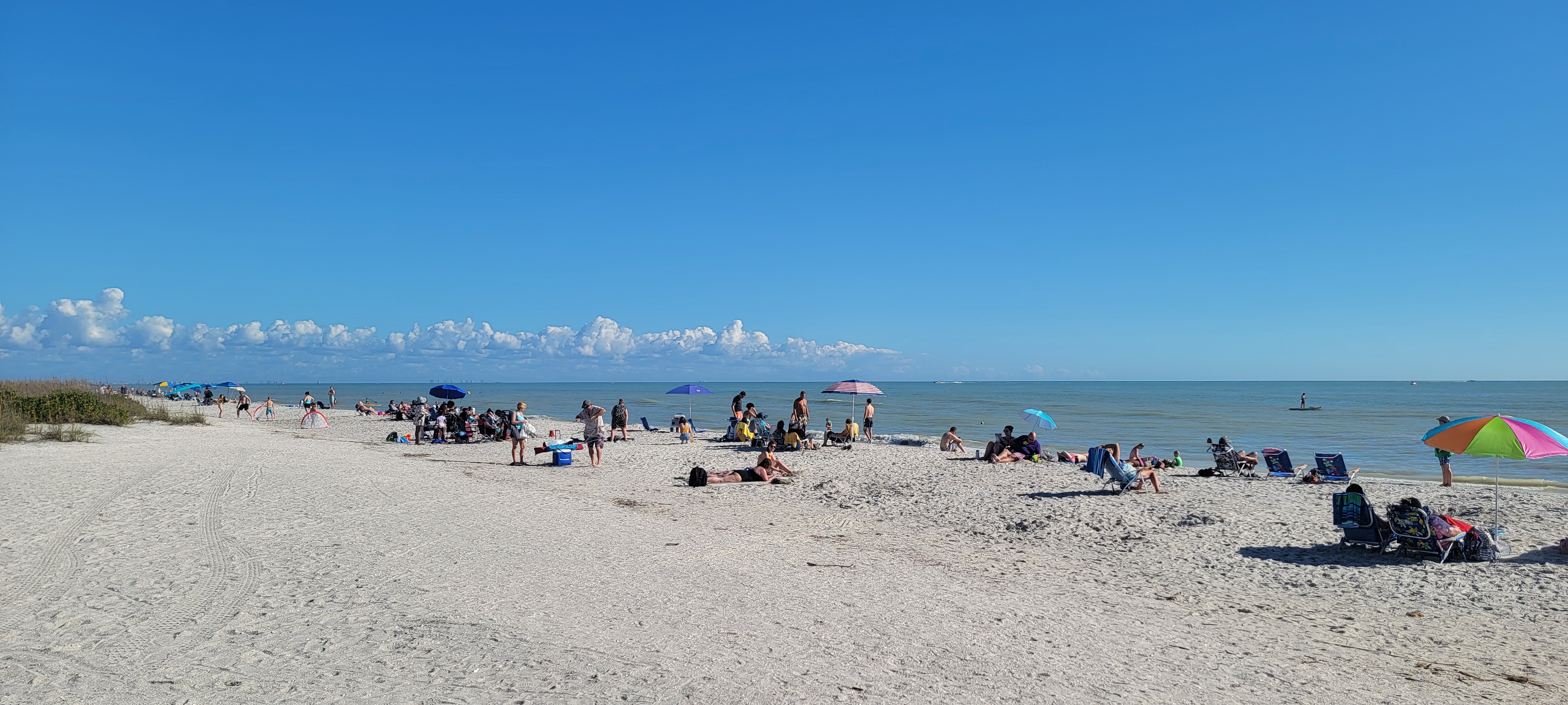 Back on the bikes, we rode over to the Sanibel Historical Village, which we discovered was closed. Instead, we rode over to the water and spent a little while strolling the busy beach.