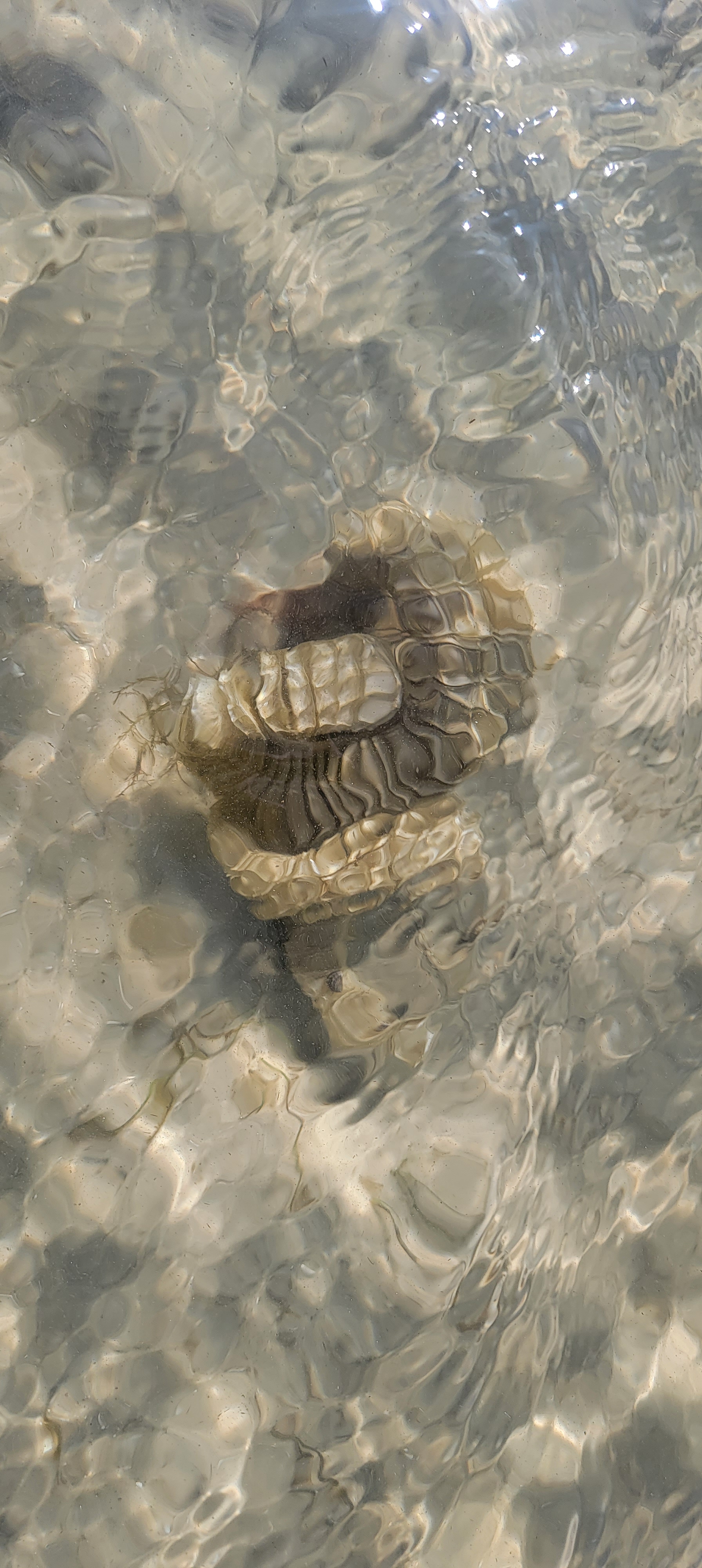 Coming back through the cut, the water was even lower. We beached again, but decided to take the opportunity to walk around and explore. We saw conch, starfish, crabs, and all sorts of little wonders. What a blessing that our dinghy got stuck!