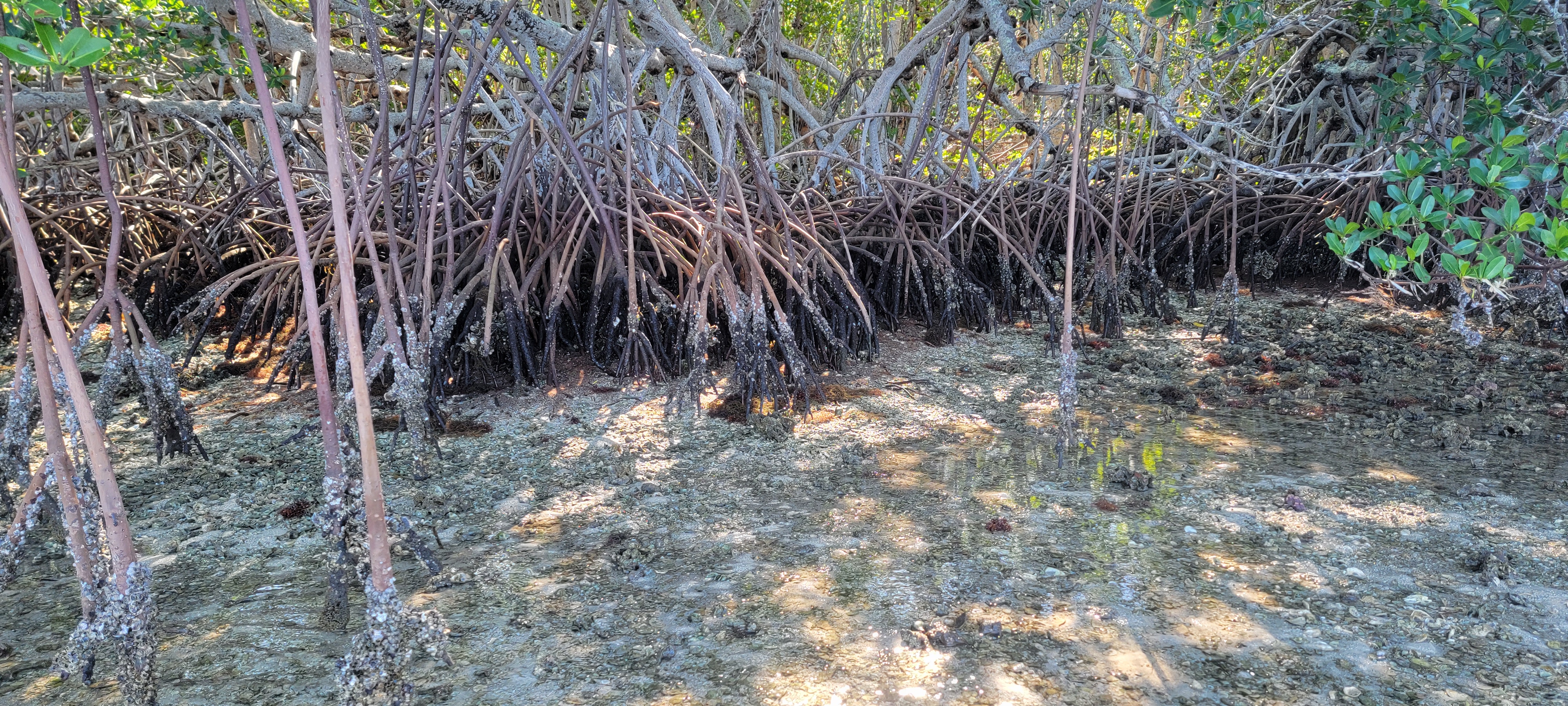 After a bumpy night in Ding Darling, we enjoyed breakfast before dropping the dinghy to do a little exploring. We went to the west side of the bay with the intent of going into Ding Darling Wildlife Refuge, but it was low tide and we couldn’t get over the sand bar at the entrance. So we went to the other side of the bay to cut trough to Tarpon Bay.