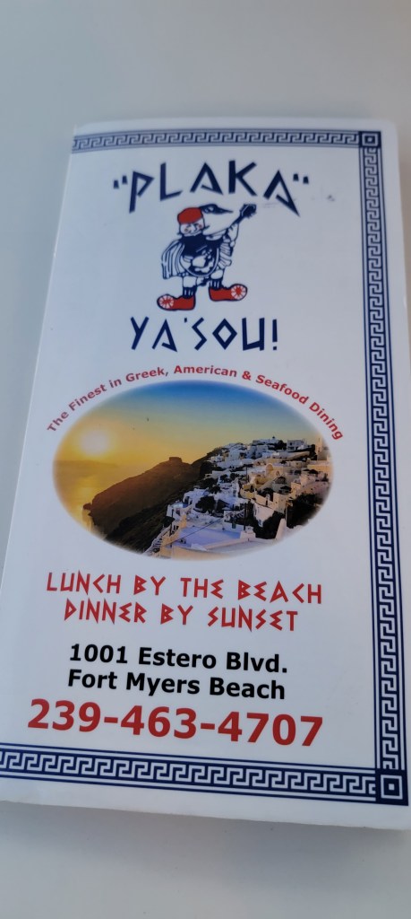 We also ate at Doc’s Rum Bar and Grille. The rum cocktails were great, and the food was quite good. The chocolate banana bread pudding was the best dessert we’ve had so far. There are other locations beside this one, but this site has plenty of on-the-water seating. On Estero Island, we ate at Sunset Beach Tropical Grille, which was disappointing on so many levels. The food was blah, our drinks were not what we ordered. The music was AWFUL. We ate there for lunch and were happy to be finished.