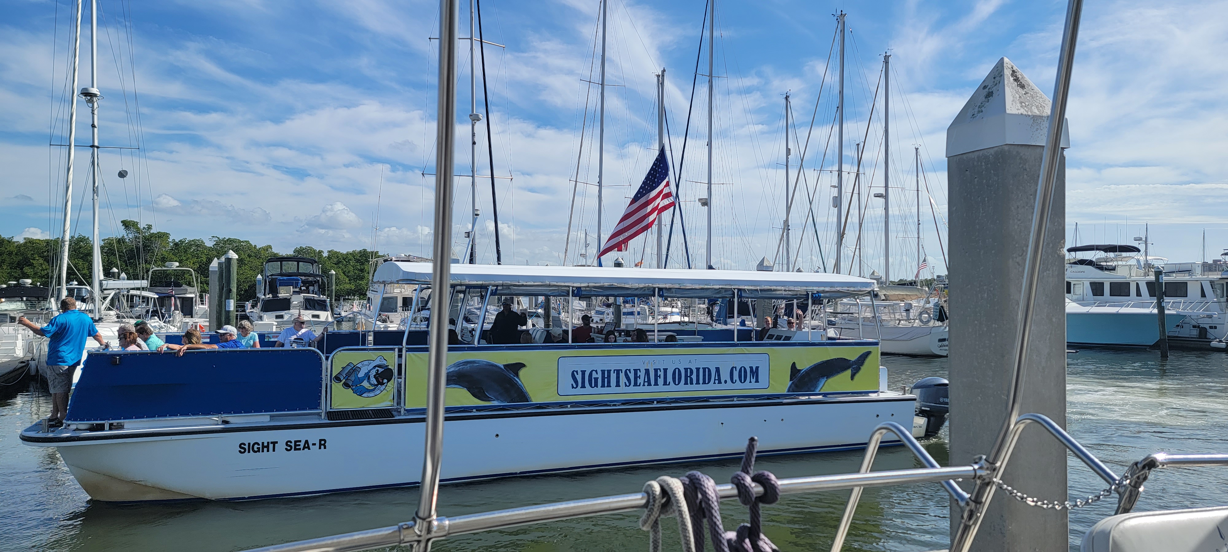 Our daughter and I went on a dolphin cruise. She hadn’t seen more than a couple dolphins on our cruises on our boat, so we thought we’d try to see some. It was disappointing. We saw a handful of dolphins from a distance, but if you’ve seen dolphins swim in the wake of your boat, it’s just kind of “meh” seeing them from afar. We did learn, however, that a dolphin pod will temporarily kick out a dolphin who misbehaves. So the dolphin we saw that was throwing a catfish up in the air (which dolphins don’t even eat!), was probably one of those booted from the pod. The boat driver thought this guy must have made some particulary egregious act because he seemed to be away from his pod for a long time.