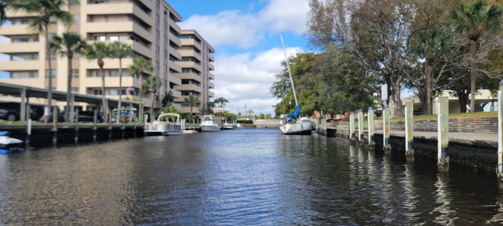 Eventually, we turned around and headed back into the bay and up the Caloosahatchee River to Cape Coral. It was uneventful getting through the canals.