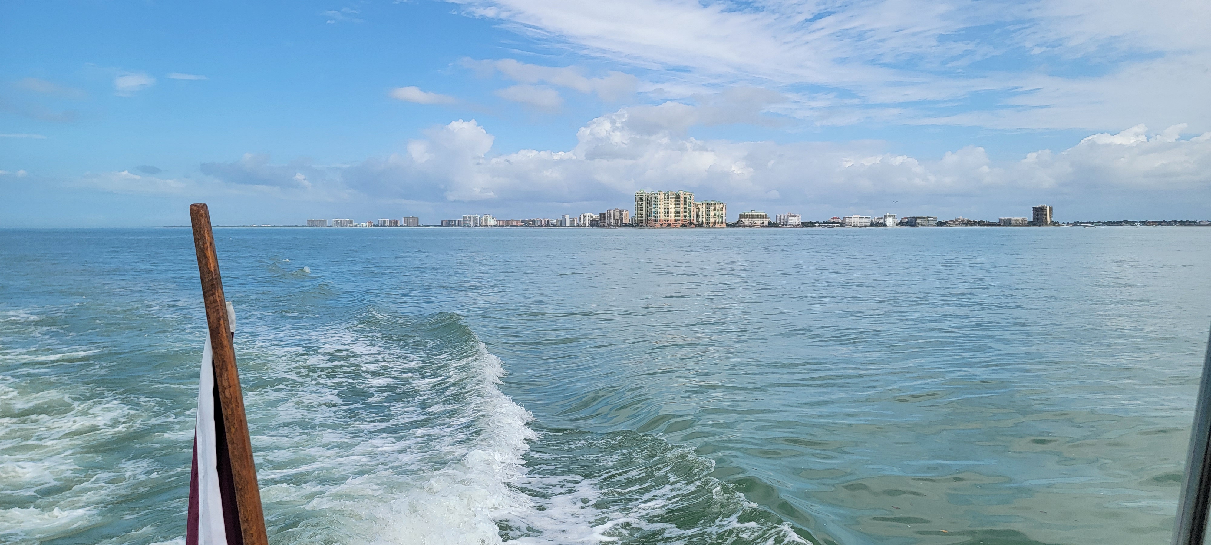 The water was smooth and glassy for most of the way. After getting up on plane for about half an hour to blow out the soot, we settled into our normal cruising speed of 10-11 mph. After passing south of Marco Island, we angled east toward Indian Key Pass. The water was an incredibly beautiful green. We saw glimpses of dolphins from time to time, but none of them deemed our wake worthy to play in.