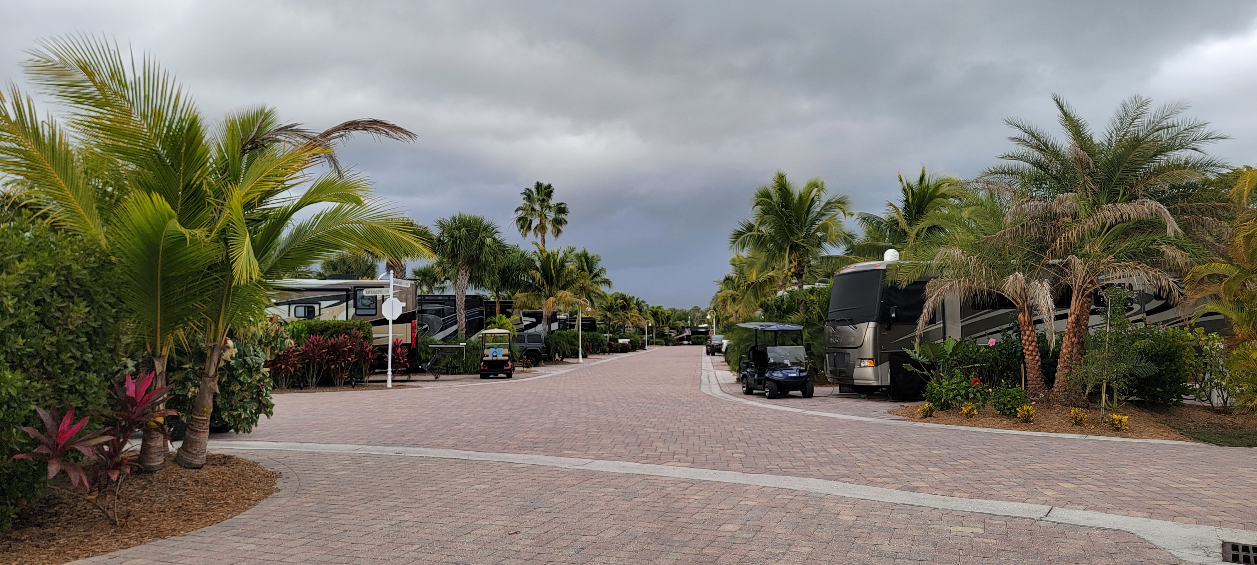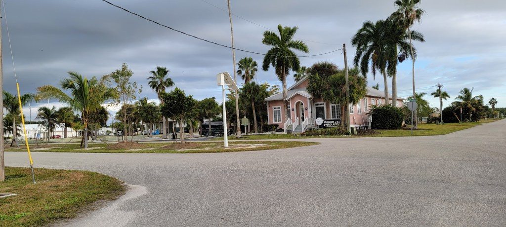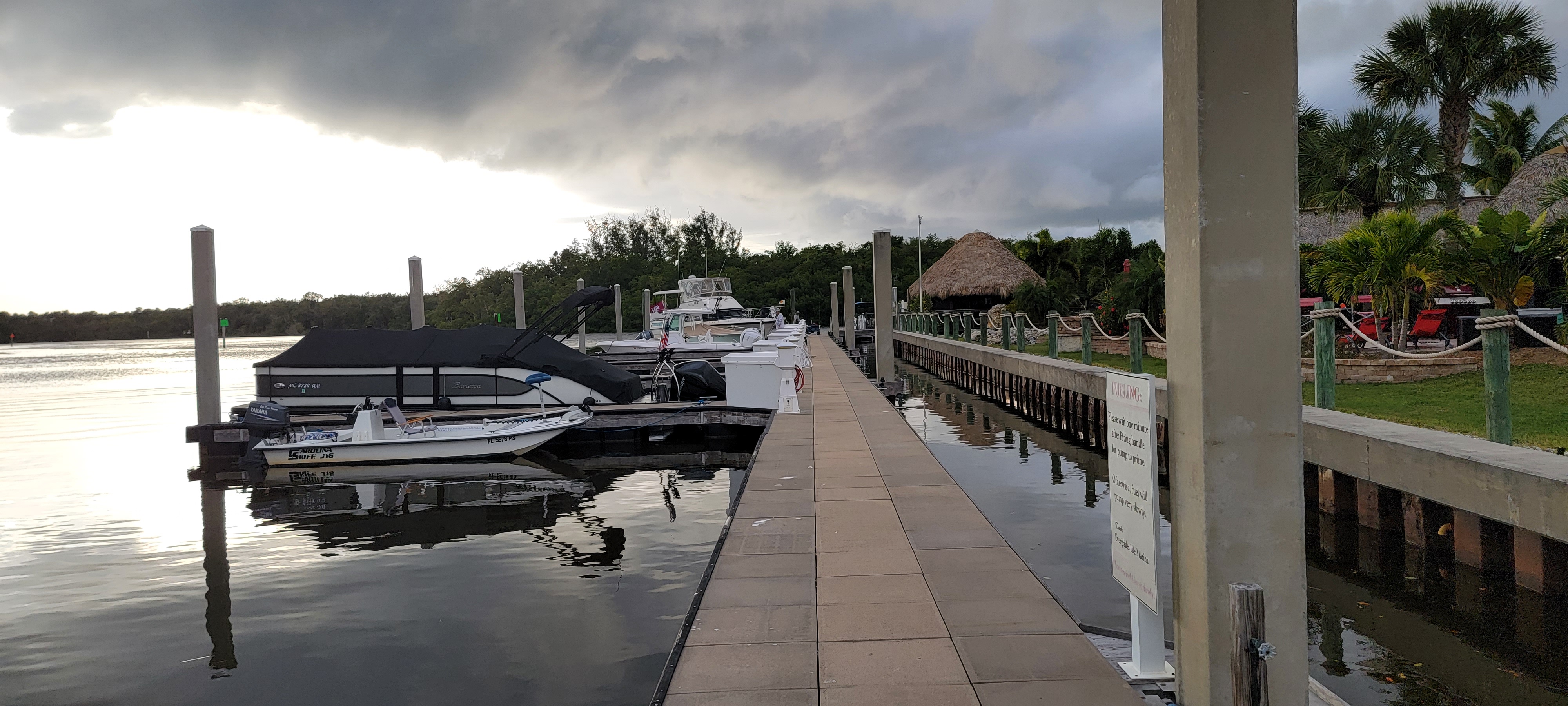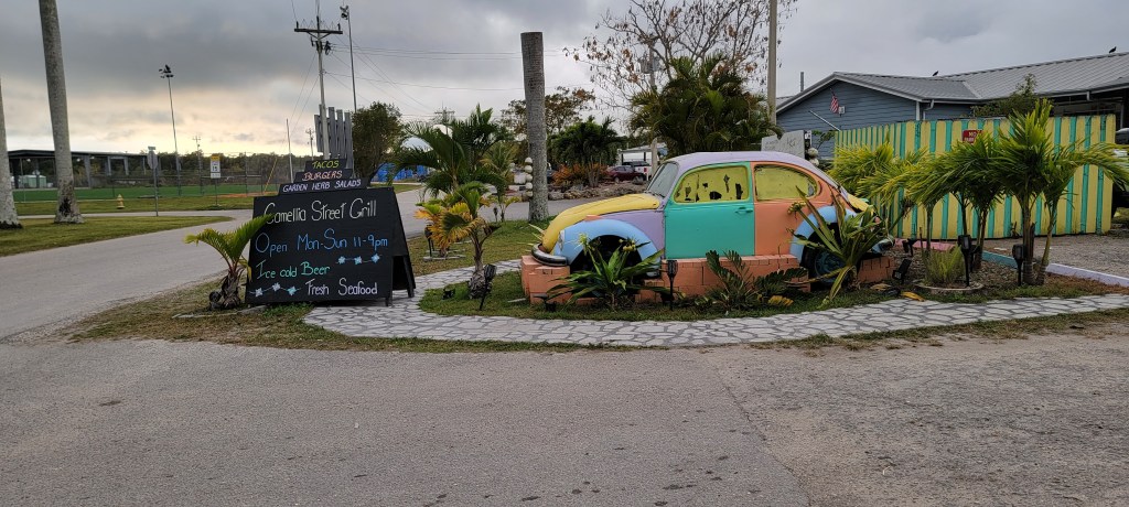Coming into Everglades City was really cool. It’s a neat little town with some commercial fisheries, ramshackle restaurants, some beautiful houses, tourist boats, and all sorts of bustle. After calling Everglades Isle, Dennis, the manager, met us at the dock to help us into a slip. Dennis was incredibly friendly and helpful. He grabbed a golf cart and drove us up to the office to check in. He was clearly very proud of the business and rightfully so. The beautiful landscaping, brick roads, and immaculate clubhouse were wonderful. We regretted that we had only planned to stay one night. We will have to plan a much longer stay next time.