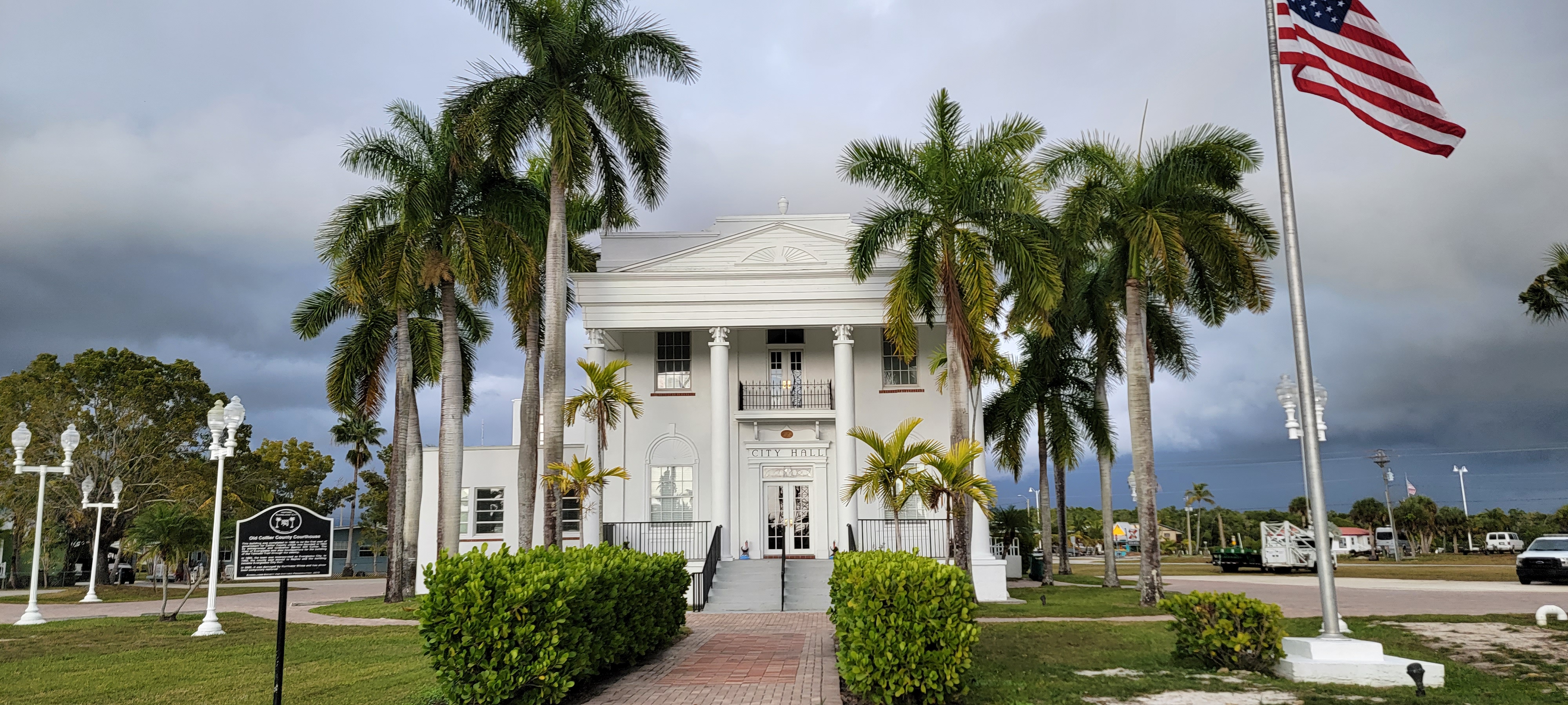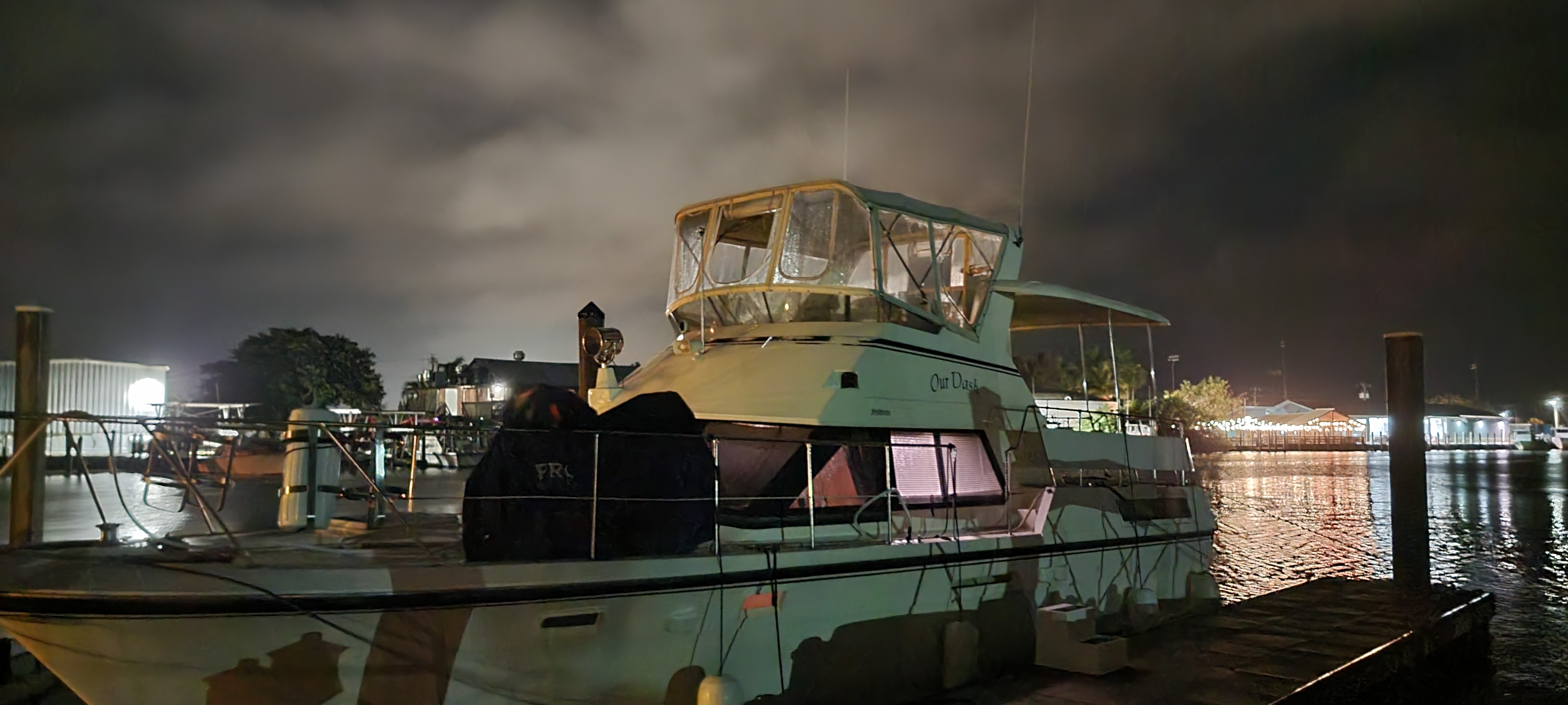 We rented a golf cart and went into town. Everglades City is only about 8 blocks long and 4 blocks wide. We went the length of town, checked out the City Hall, stopped at a hardware store for some screws, and took a peek at the restaurants. The clouds to the east were getting a bit dark, so we headed back to the boat before the rain to throw a couple of extra lines on the boat.