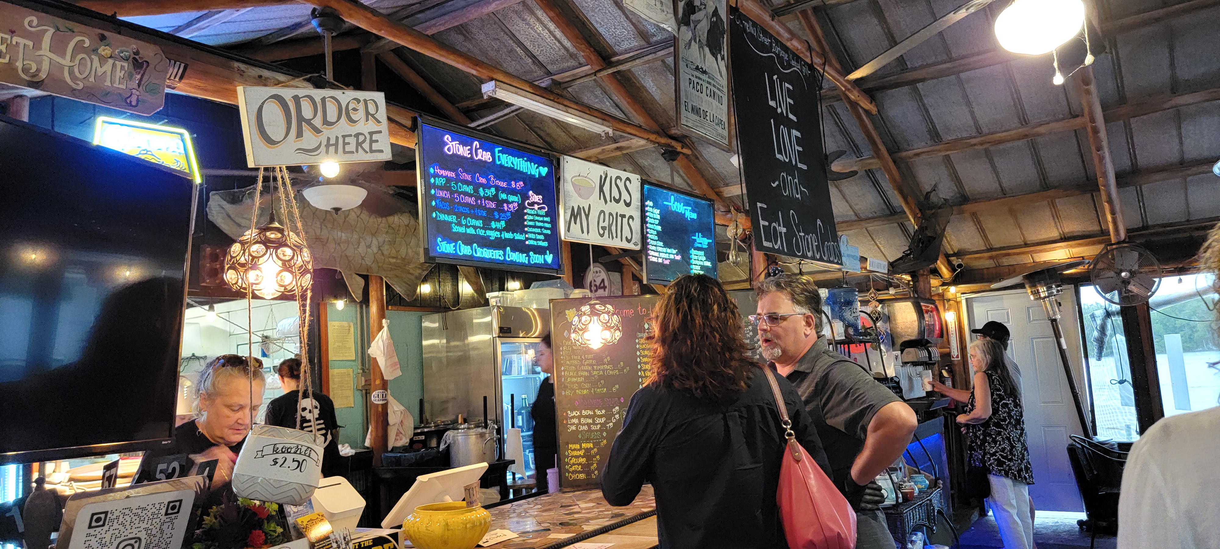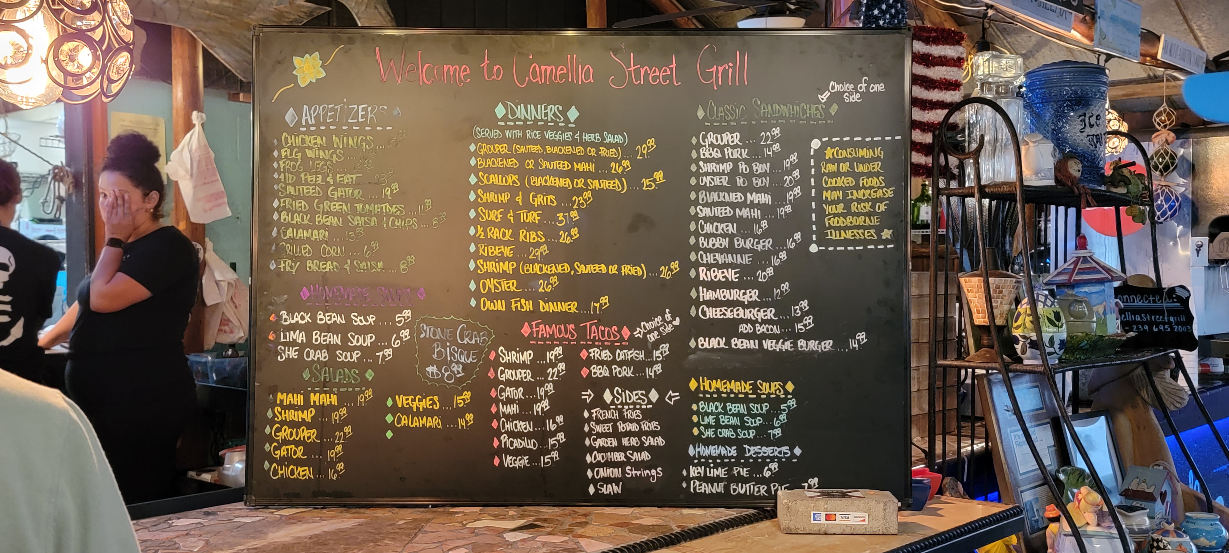 Before the rain hit, we scooted over to Camellia’s Street Grill for some… street grill. By the time we ordered, it had started to rain, but we found a nice table outside under an awning to enjoy our meal. By the time we started eating, it was pouring rain, so we took our time, had some key lime pie for dessert, and waited for the rain to let up before heading back to the boat.