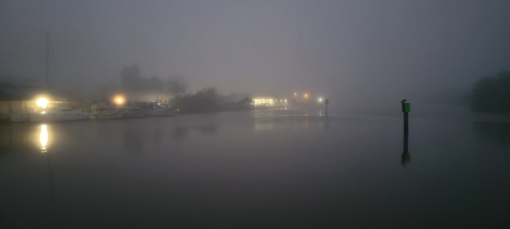 The fog persisted through a lot of the morning, making the time pass slowly. At some points we could see about a half mile out and others to a mile or two. It kind of felt like we were in a snow globe, but a very boring one with no snow and only a bobbing little boat.