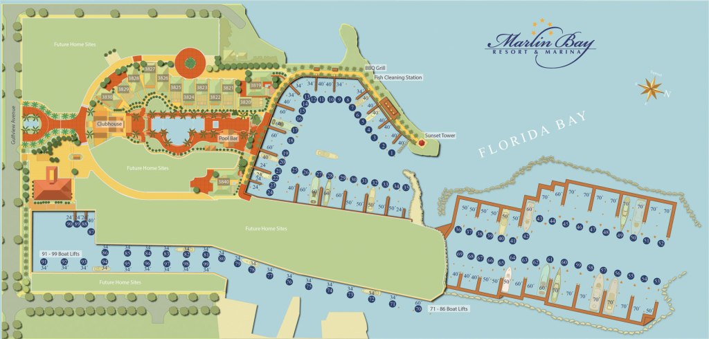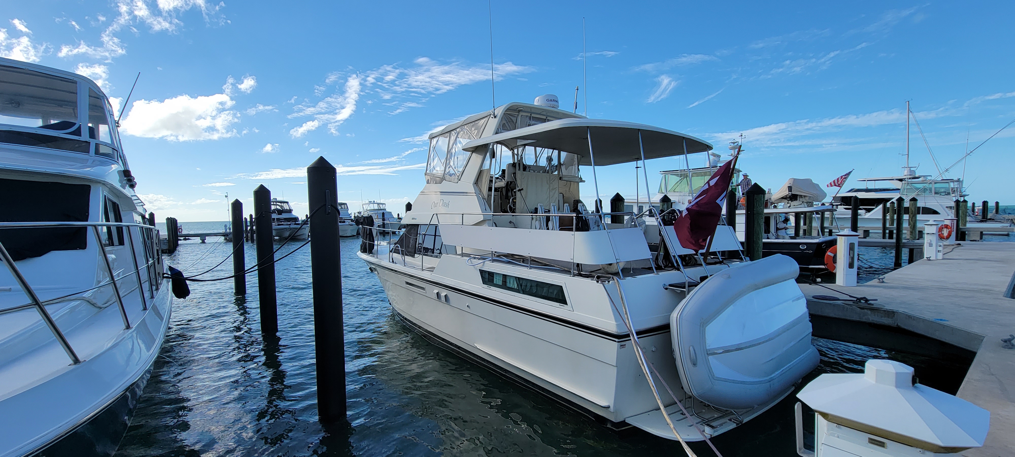 We followed the directions from the Marlin Bay Marina and called on the radio when we got to the appropriate marker. They directed us to our slip, and two men were there to greet us and help us back in. They hooked up our power and water and were on their way. Next, we were greeted by two of the marina staff, who told us about all the amenities we were there to enjoy. Super friendly.