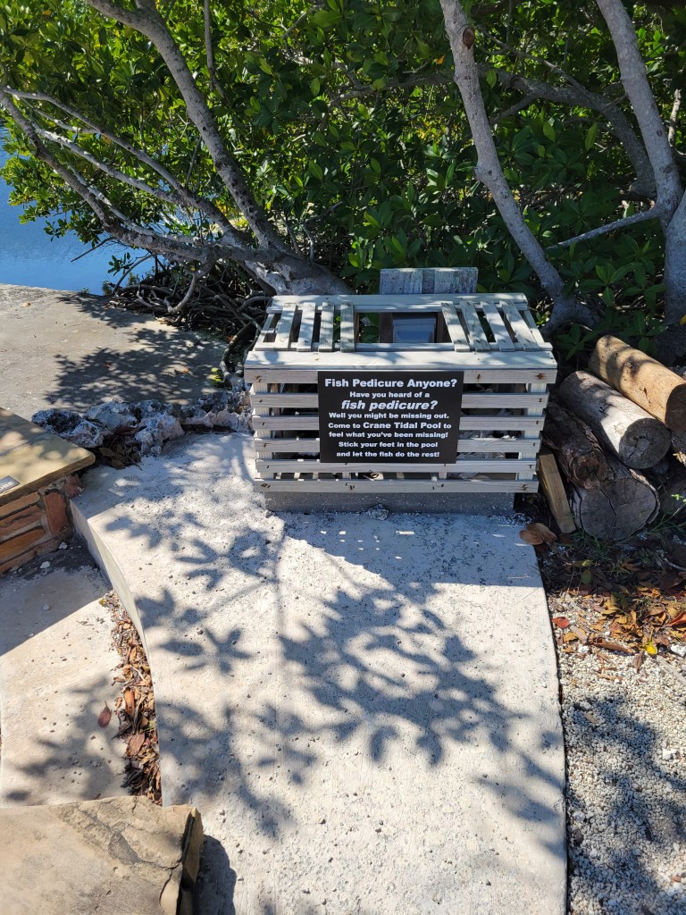 On another day I went in the other direction to the Crane Point Hammock Museum and Nature Trails. I loved this little park. The entry fee was $14.95, and I thought it was worth it. The trails are wide and well-maintained, with descriptive signs along the way regarding the trees and sea life encountered along the way. There’s supposed to be a 9-minute film to summarize what’s in the park, but the projector was not working that day. I saw a nurse shark in the water off of the Sunset Boardwalk. I walked through the bird rehab area and saw dozens of birds. The Crane house was closed for renovations, but the saltwater pond was open and just waiting for my feet to get a fish pedicure. The water was a little chilly, but those tiny little fish did their thing to my tootsies. I was mesmerized and sat there for some time. I also saw the largest spider I had ever seen. Thankfully, it was way above my head in a giant web catching gross bugs. A passerby pointed it out, and I never would have seen it on my own.