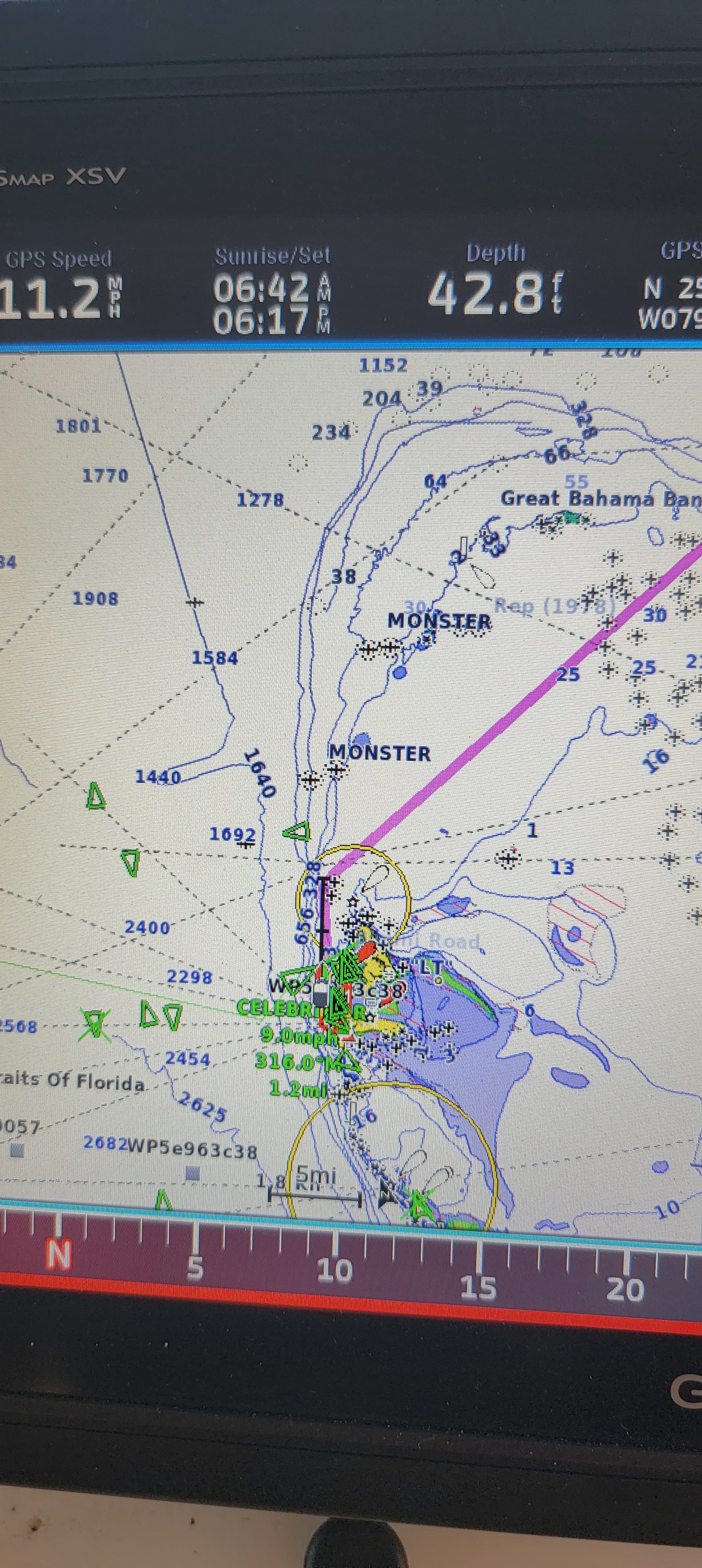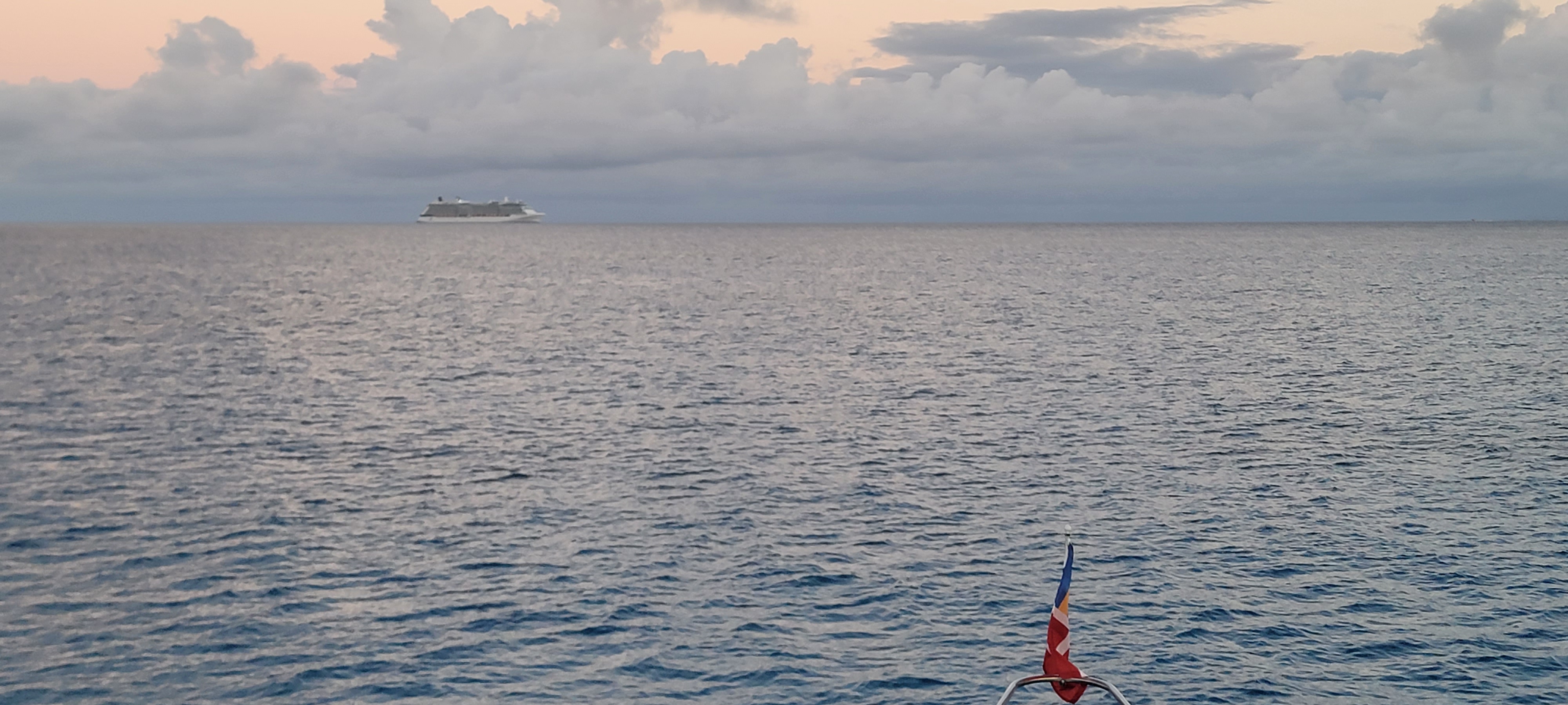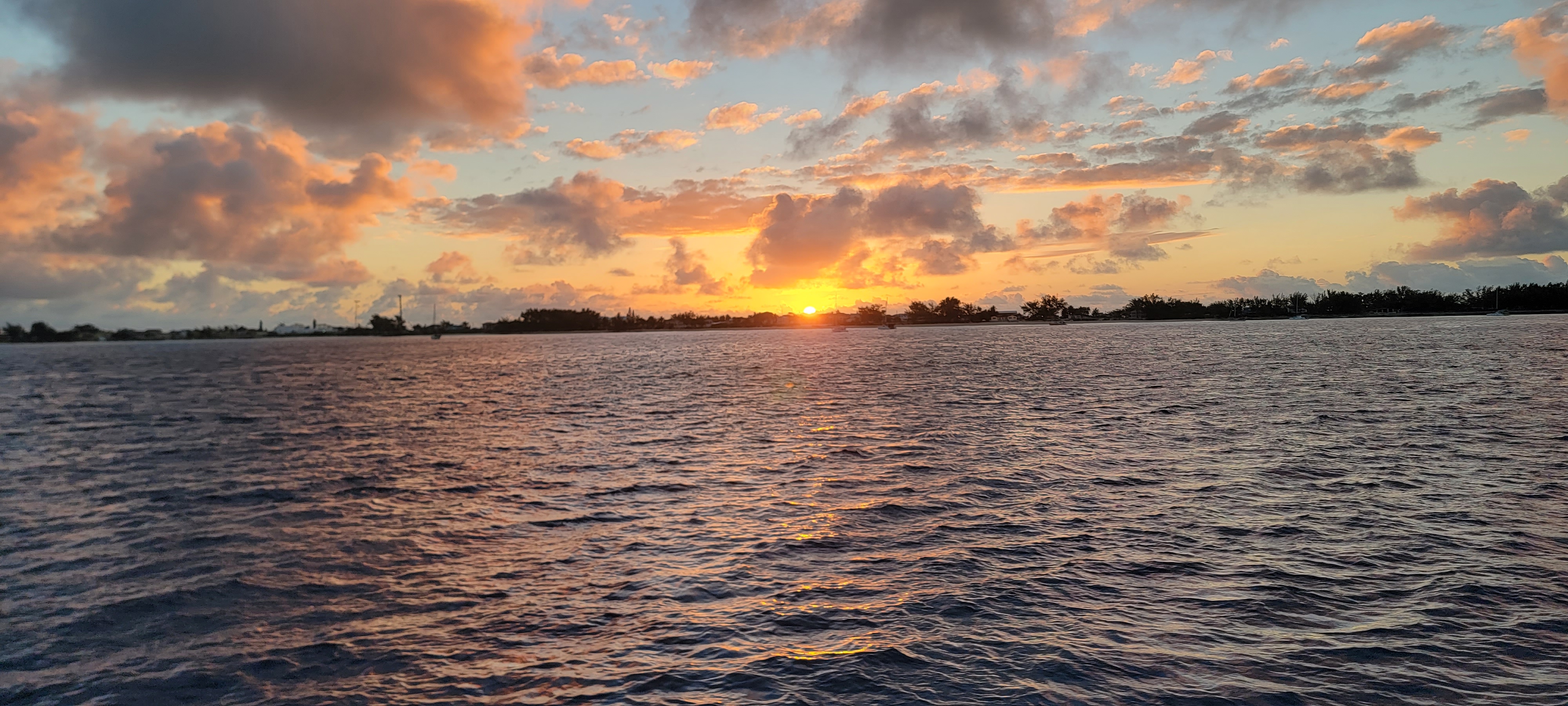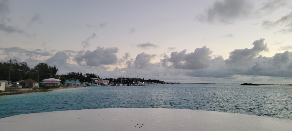 The wind finally died down enough that it was time to head to our next stop in the Berry Islands! It’s almost a hundred-mile sail, so we needed an early start. We got up before dawn and set out as soon as we had enough light to go. We thought we’d be sneaking out, but one of our neighbors was nice enough to come over and throw off our bow lines.