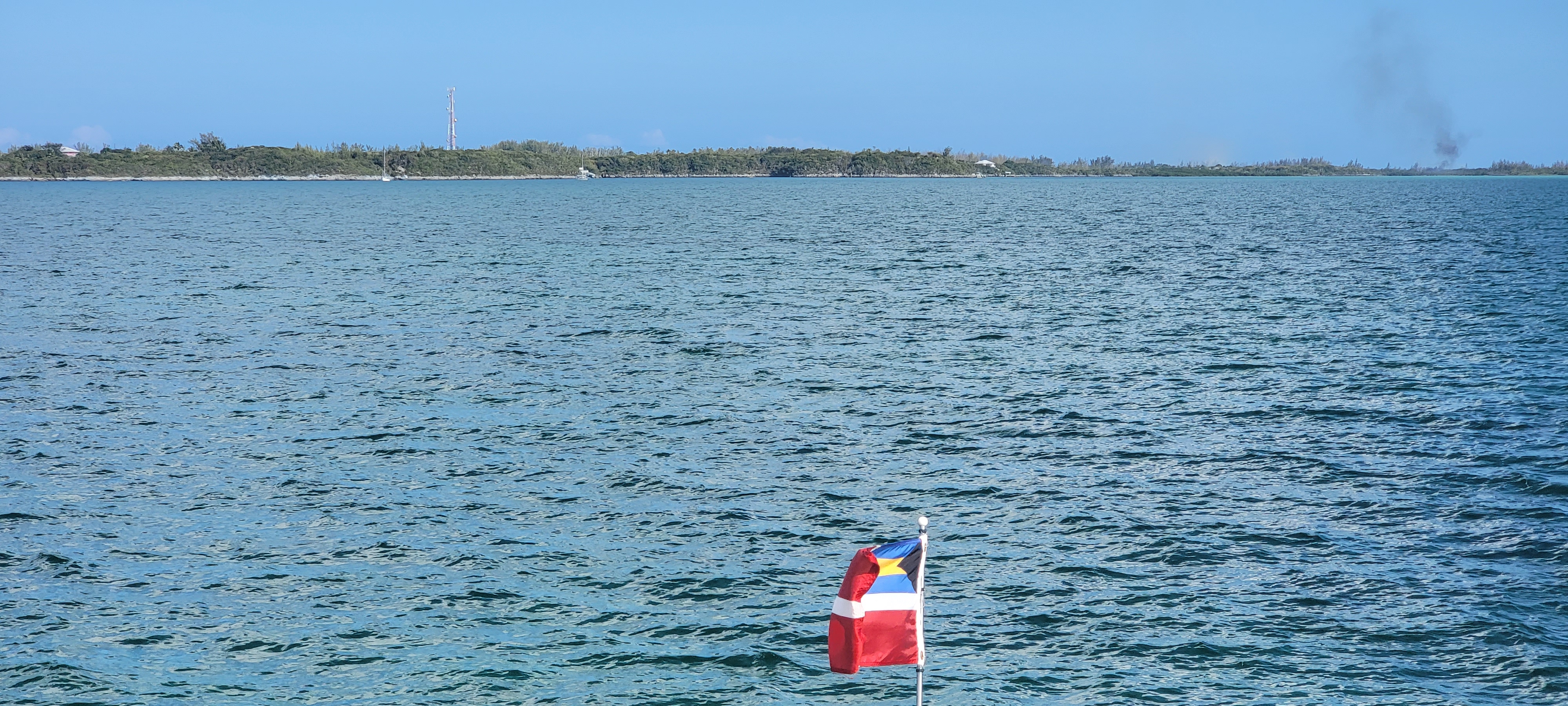 We rounded the north side of Bimini and pointed ourselves almost due east toward Great Harbour Cay. The trip was fairly uneventful. We had bow waves. For the most part, they were 1 or 2 feet, but we had a few hours where they were a bit more spritely. We would occasionally see another boat and a couple of mega-yachts yeeted (see Wendy’s earlier post about yeeting) past us on the way to Nassau.