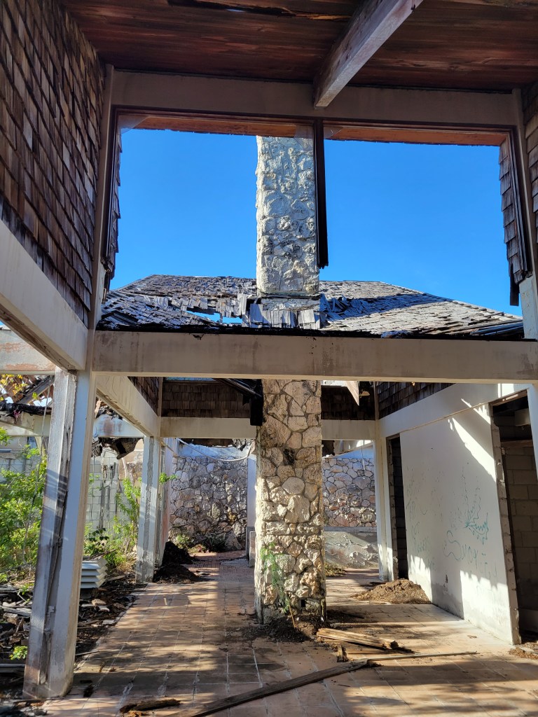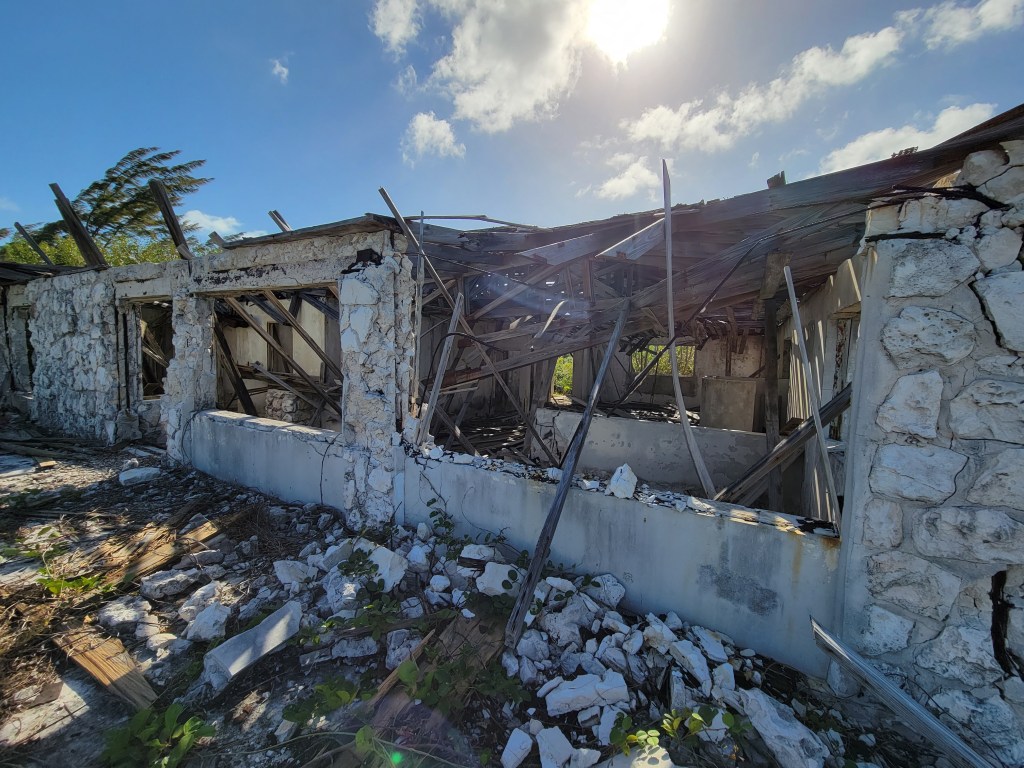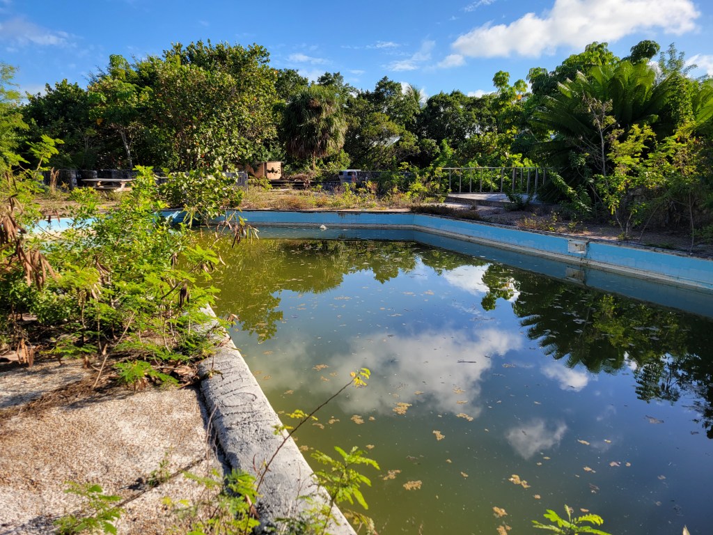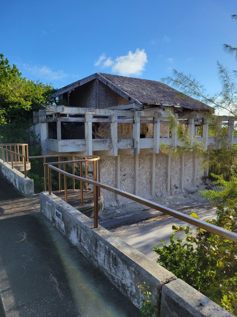 We explored the ruins of the once-beautiful clubhouse—the pool is full, the bar is nearby with tables at the ready for guests. We could imagine guests in the large dining area waiting for their Bahamian luncheons after playing 18 holes on the golf course.