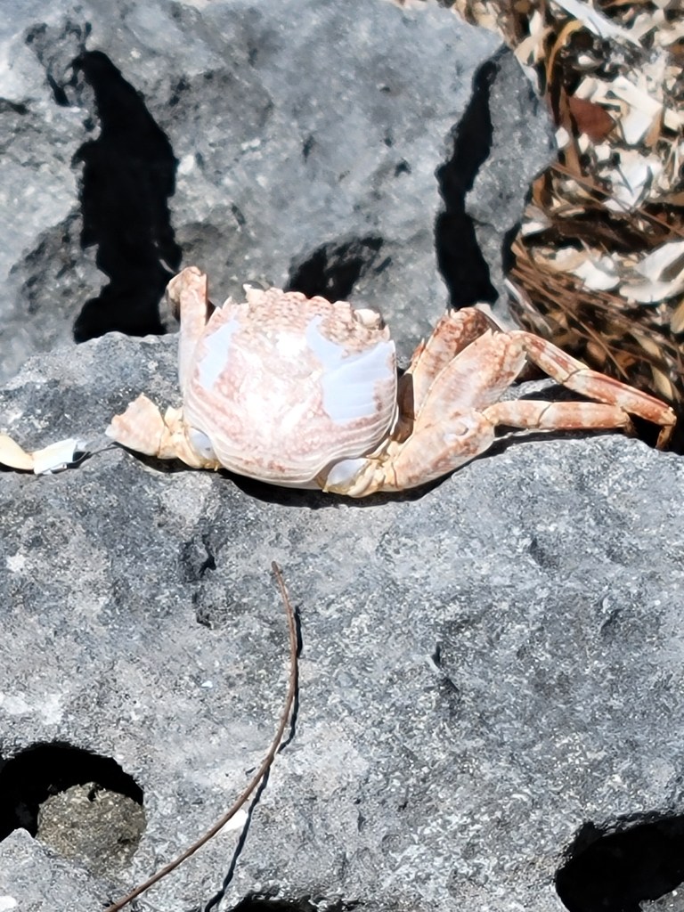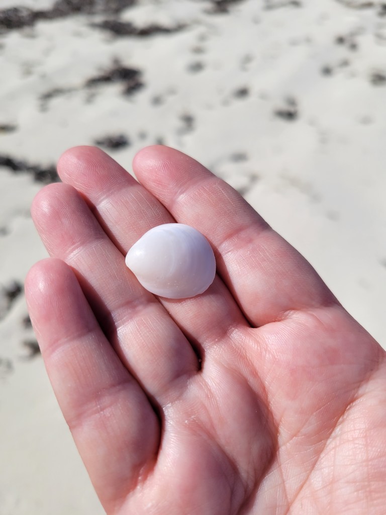 Get back on your golf cart and turn left out of the parking lot. Take the road alllll the way until it ends. Yes, it will turn to gravel, and yes, it will get bumpy. Go right up to the end and find yourself at Shark Beach. At high tide, you will find a lovely beach to sit at or walk on. At low tide, you will find a large sandy area on which to walk. If you try, you could probably become a sand dollar millionaire. Or at least a sand dollar dozensaire. There were quite a few. It’s too shallow to swim here, but we liked how quiet it was at this beach. The rest of the beach that stretches the entire east side of the island is also great beach and is more swimmable.