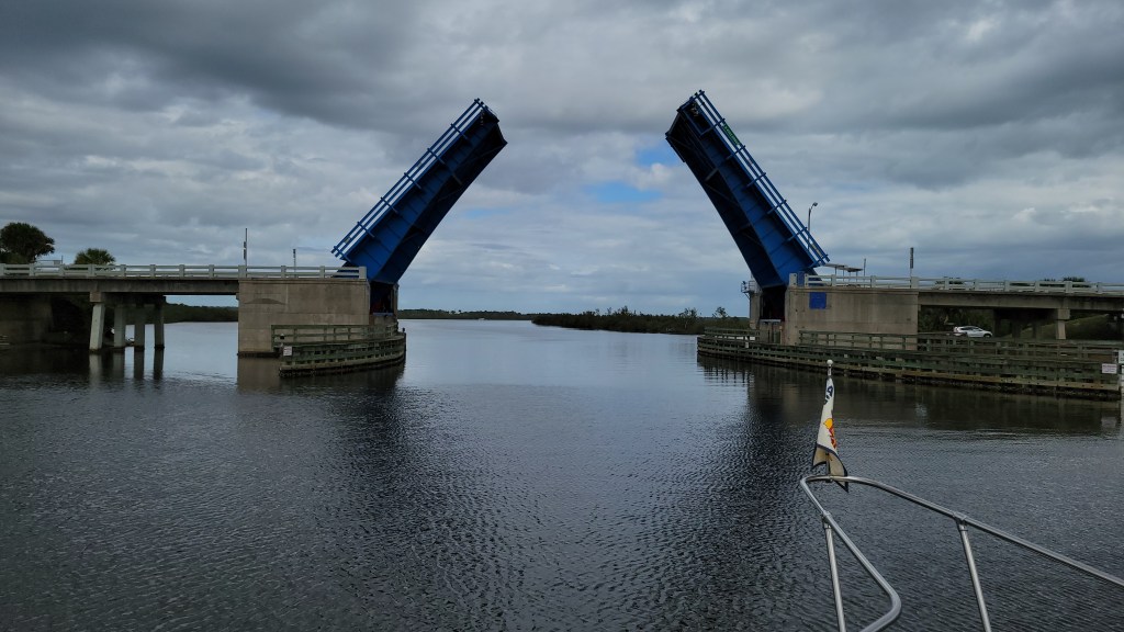 Dolphins played along the way, and today we had one bridge we needed to open for us. The bridge opens on demand, so Owen called the operator on the radio. The man said he would open it as we got closer. And that’s exactly what he did.