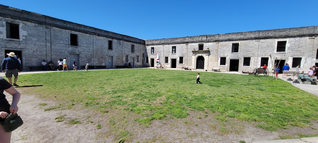 The Castillo de San Marcos was a big hit with all three of us. Owen and I walked around it the first day we were there. It was closed so we didn’t go in. We waited in line for 45 minutes to see it on a weekend day with our daughter. Rather than paying $15 per person, we bought a national parks pass for $80, which covers 4 people at many parks. So we’re prepaying for our time in the Chesapeake! We soaked up that fort and all it had to offer. Lots of history there.