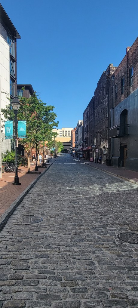On our last night in Savannah, we Ubered into town and meandered through the city to get as much in as we could. We walked along the riverfront and along St. Julian Street, where Owen had ice cream and I had a praline (okay, I had two). With such a short amount of time available, we thought we would try to take a city tour. The only one available in the evening was a ghost tour. So we did a ghost tour. Not really our thing, but it was fun. We had a late dinner at the Shrimp Factory.