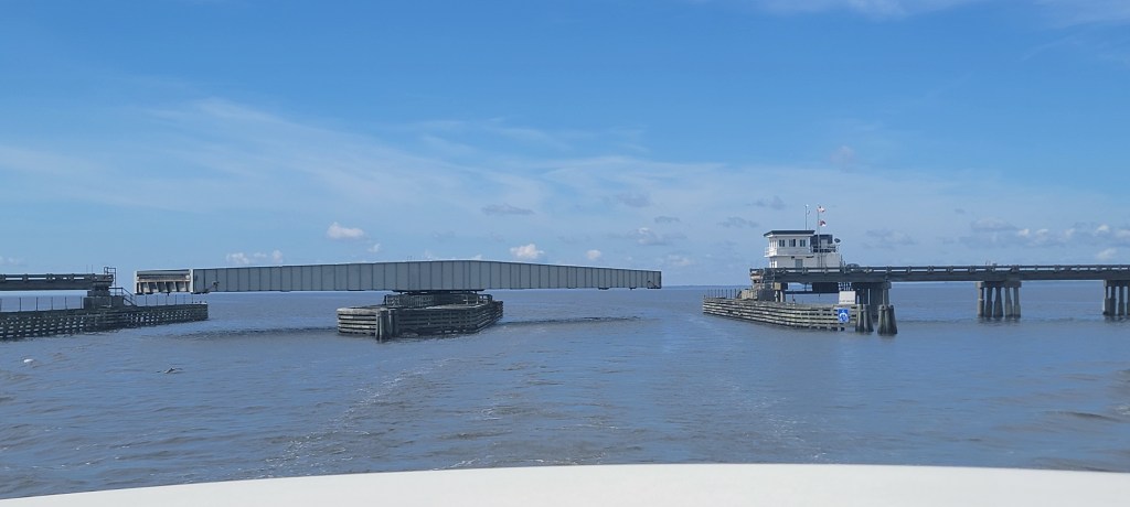 We knew we had a bridge we needed to open in Elizabeth City. We could hear a boat ahead of us call the bridge operator: