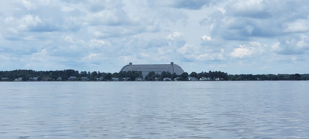 As we cruised into Elizabeth City, we noticed the Weeksville Airship Hangar on our left. It was used during World War II to house the blimps that guarded against German U-boats. It’s a massive structure that is now privately owned with no tours available.