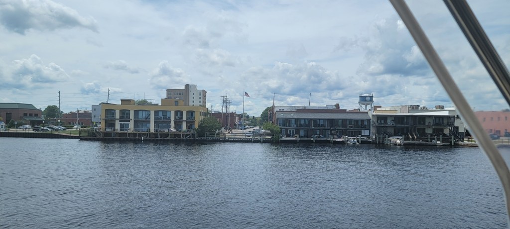 We made our way back out to the ICW and toward the Albemarle Sound. We had been told how rough this area can be, and we were thrilled to be there on a calm day. Just like Lake Michigan, you just have to watch the weather and pick a good day. We were grateful that we didn’t have to delay travel. We are also grateful we don’t have to say Albemarle out loud because we don’t know how it’s pronounced. We made up our own versions that were different every time we said the word. It’s how we roll.