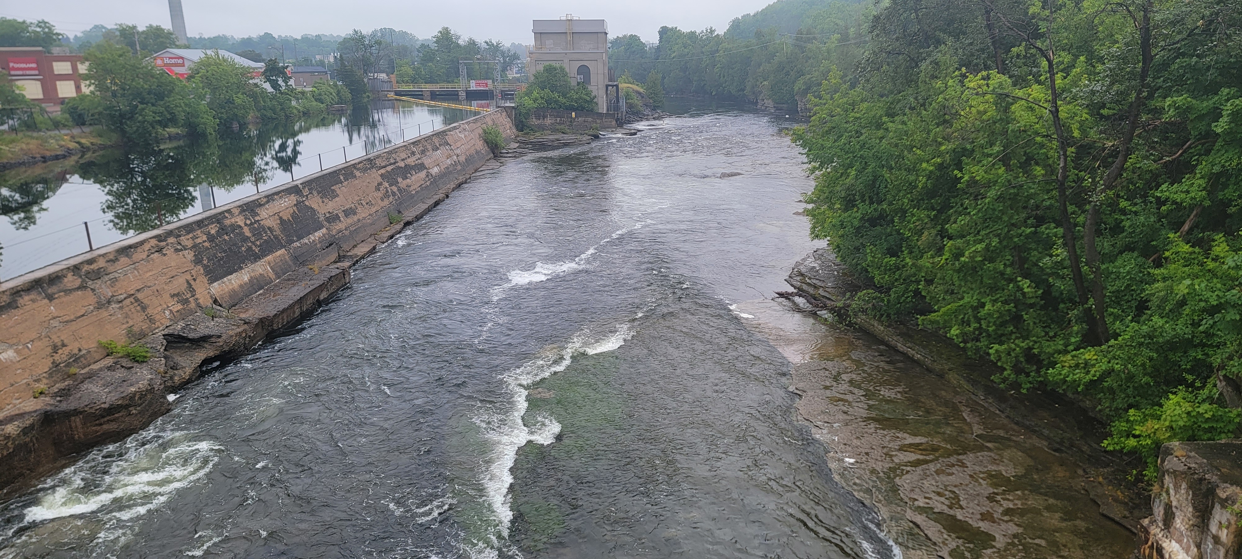Eventually, it was time to leave. We threw off the bowlines very early one morning to go wait for the first lock to be opened. It was an easy cruise up to Lock 27 – Young’s Point. We got there plenty early and tied up on the blue line to wait. This gave us time to get off the boat and explore a bit. After we got through the lock on the first lockage, we tied up on the grey line on the other side for several hours for me to work. This gave Wendy the opportunity to explore some more. We’ve had to just pass through so many of these fun locks that it was nice to have a chance to really see one.